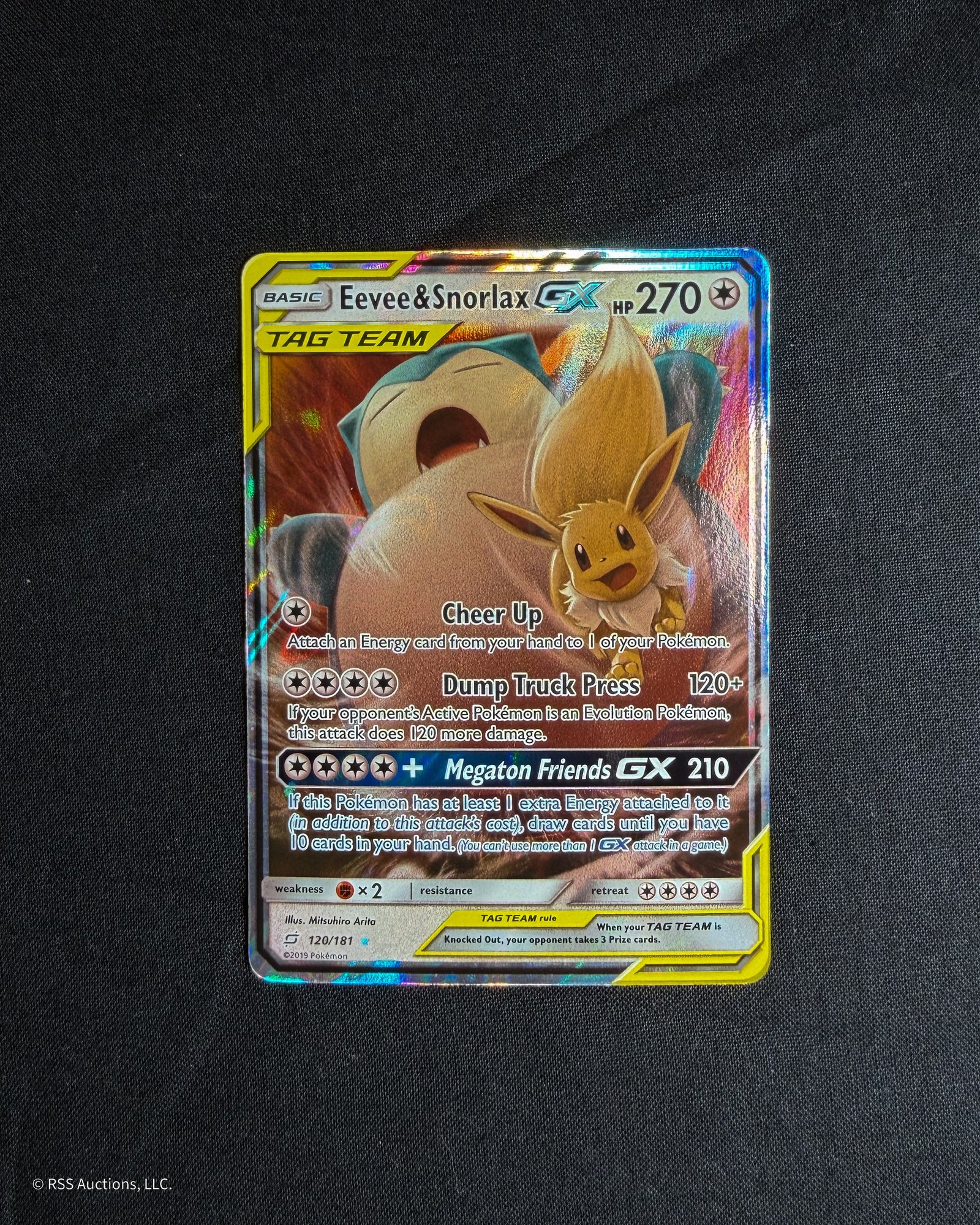 Notes: 2019 Pokemon Sun & Moon: Team Up Snorlax & Eevee GX Trading Card is pre-owned and is unplayed.