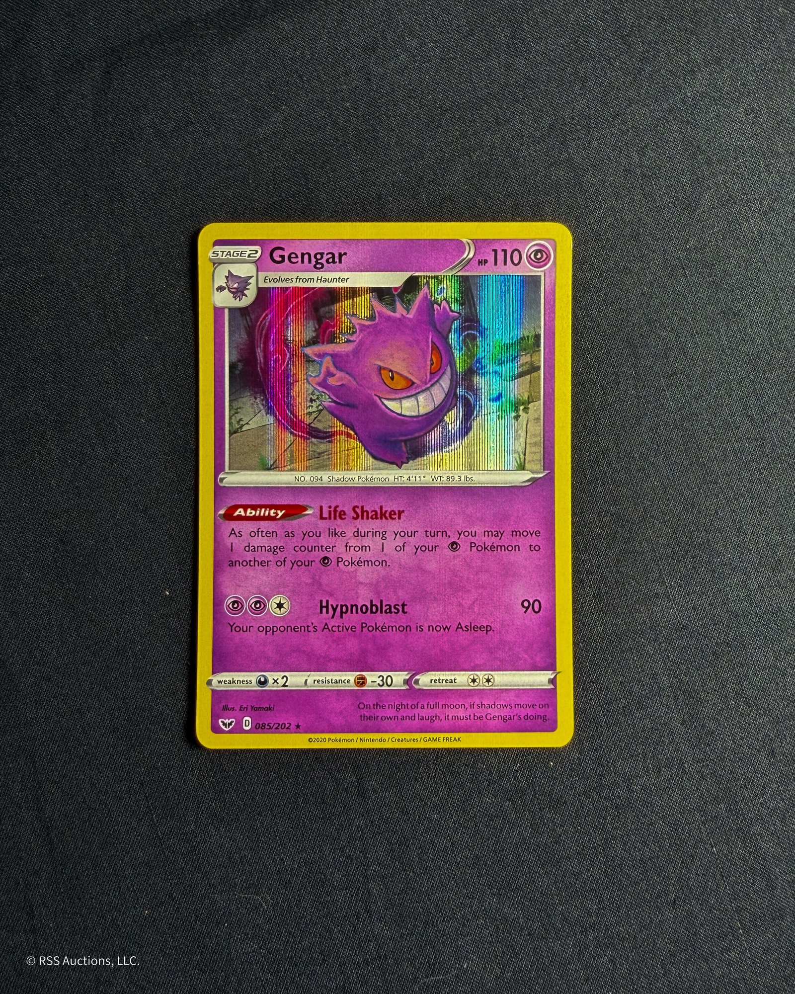 2020 Pokemon Sword & Shield Base Set Gengar #85/202 holo rare trading card.
