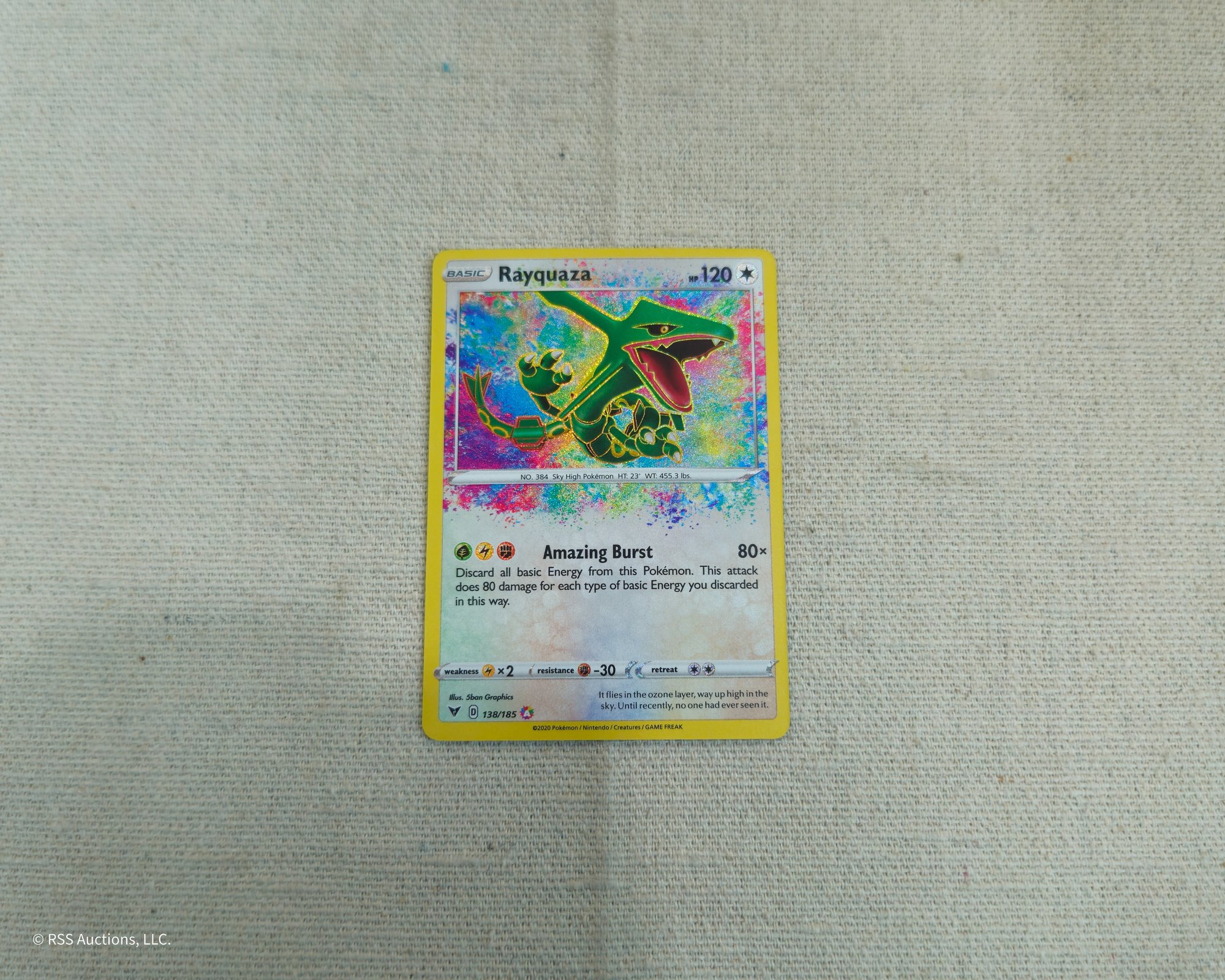 Notes: 2020 Pokemon Sword & Shield: Vivid Voltage Rayquaza Trading Card is pre-owned and is unplayed.