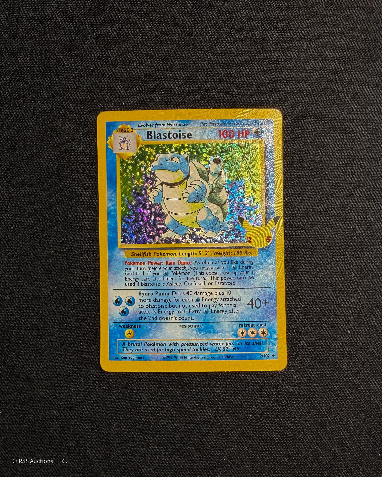Pokemon Celebrations: Classic Collection Blastoise #2/102 holo trading card.