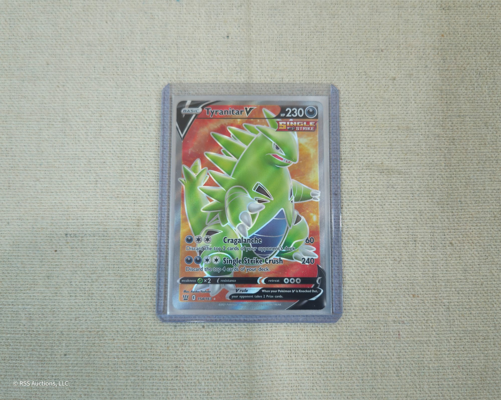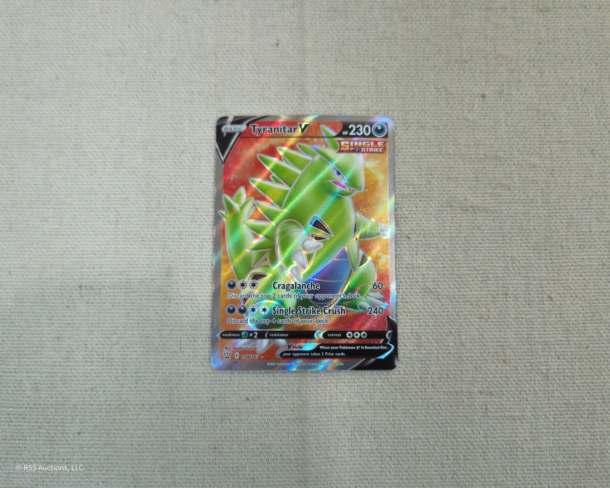 Pokemon Sword & Shield: Battle Styles Tyranitar V #154/163 full art ultra rare holofoil trading card.
