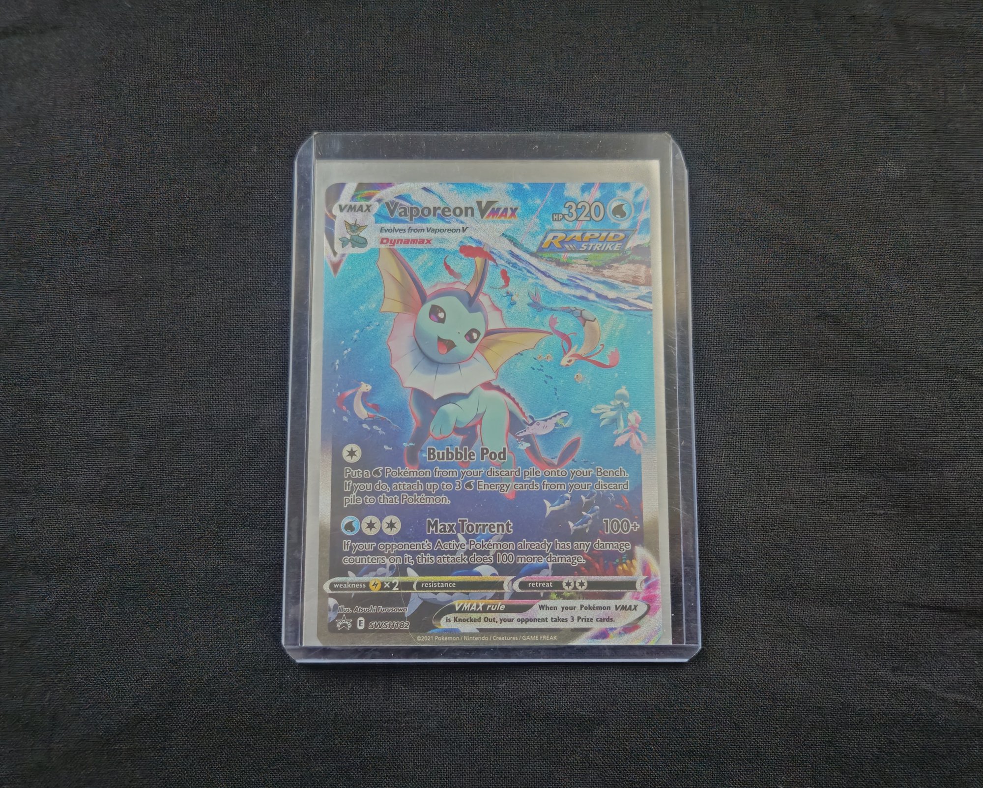 Pokemon Sword & Shield: Black Star Promos Vaporeon VMax #SWSH182 promo trading card.