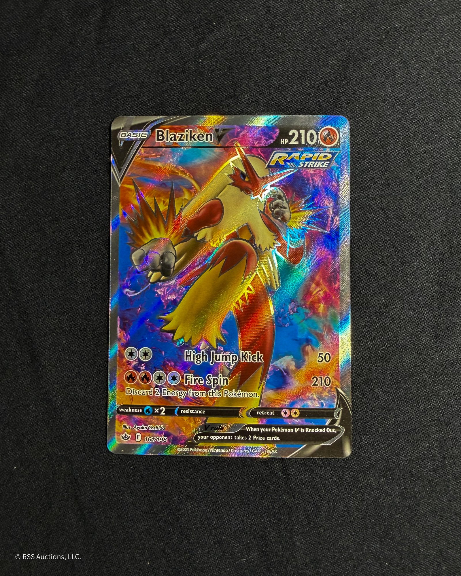 Pokemon Sword & Shield: Chilling Reign Blaziken V #161/198 full art ultra rare trading card.