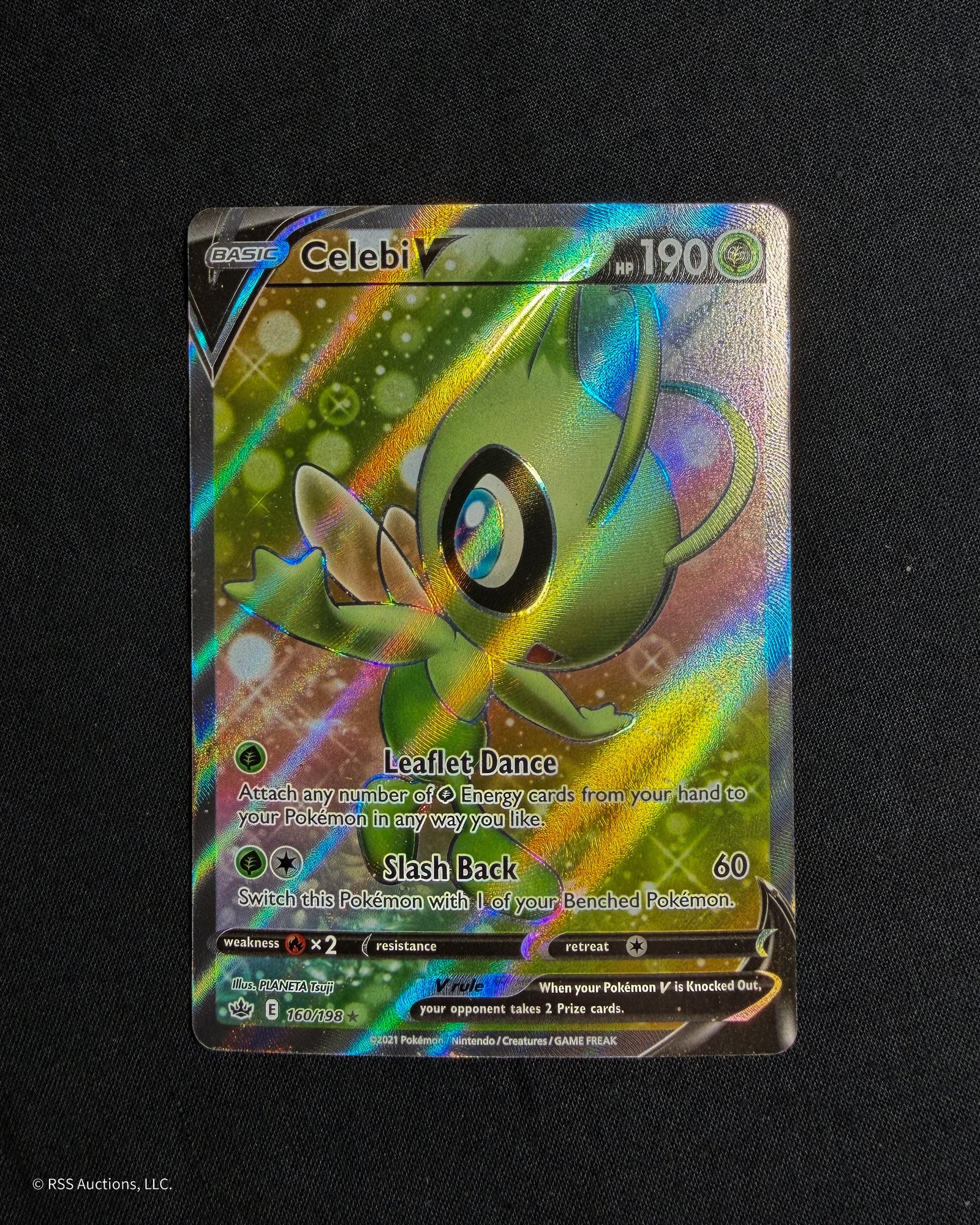 Pokemon Sword & Shield: Chilling Reign Celebi #160/198 full art ultra rare trading card.