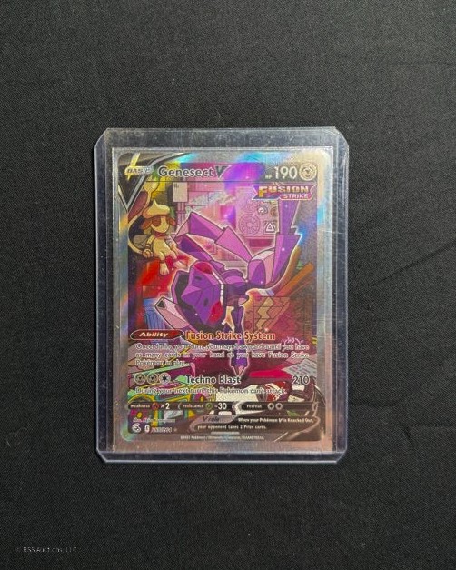 Pokemon Sword & Shield: Fusion Strike Genesect V #255/264 alternate full art ultra rare trading card.
