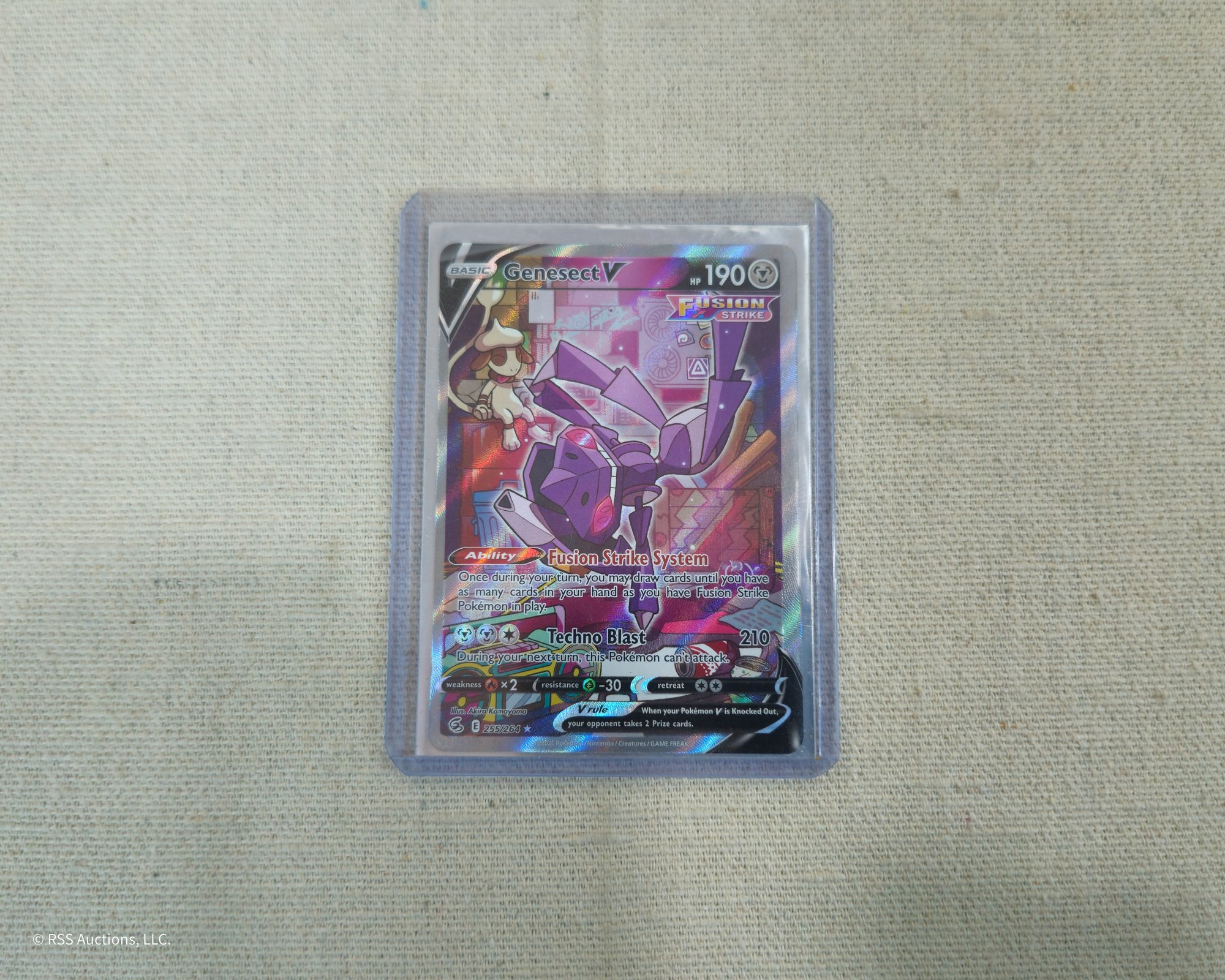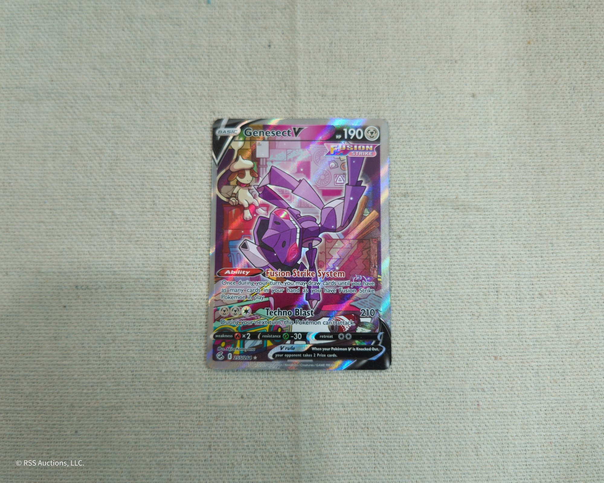 Pokemon Sword & Shield: Fusion Strike Genesect V #255/264 alternate full art ultra rare holofoil trading card.
