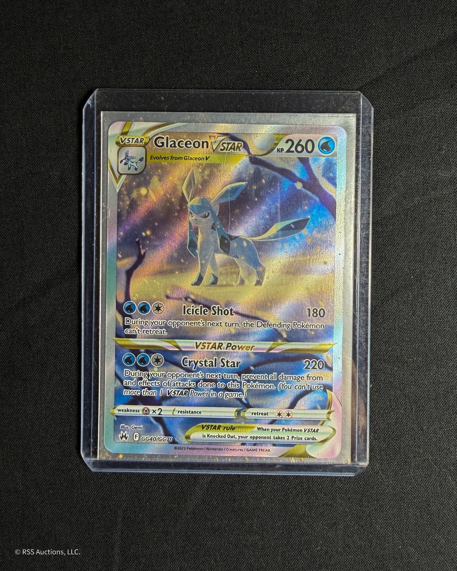 Pokemon Sword & Shield: Crown Zenith Galarian Gallery Glaceon Vstar #GG40/GG10 ultra rare trading card.