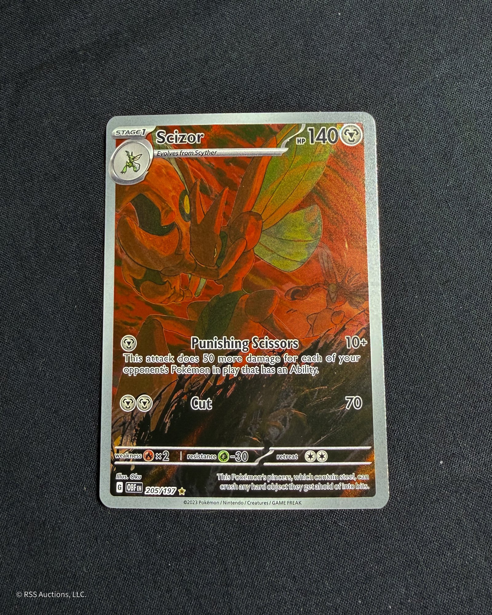 Pokemon Scarlet & Violet: Obsidian Flames Scizor #205/197 illustration rare trading card.