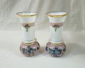 Pair of antique Victorian era opalware glass vases hand painted with floral scroll and gilt accents.