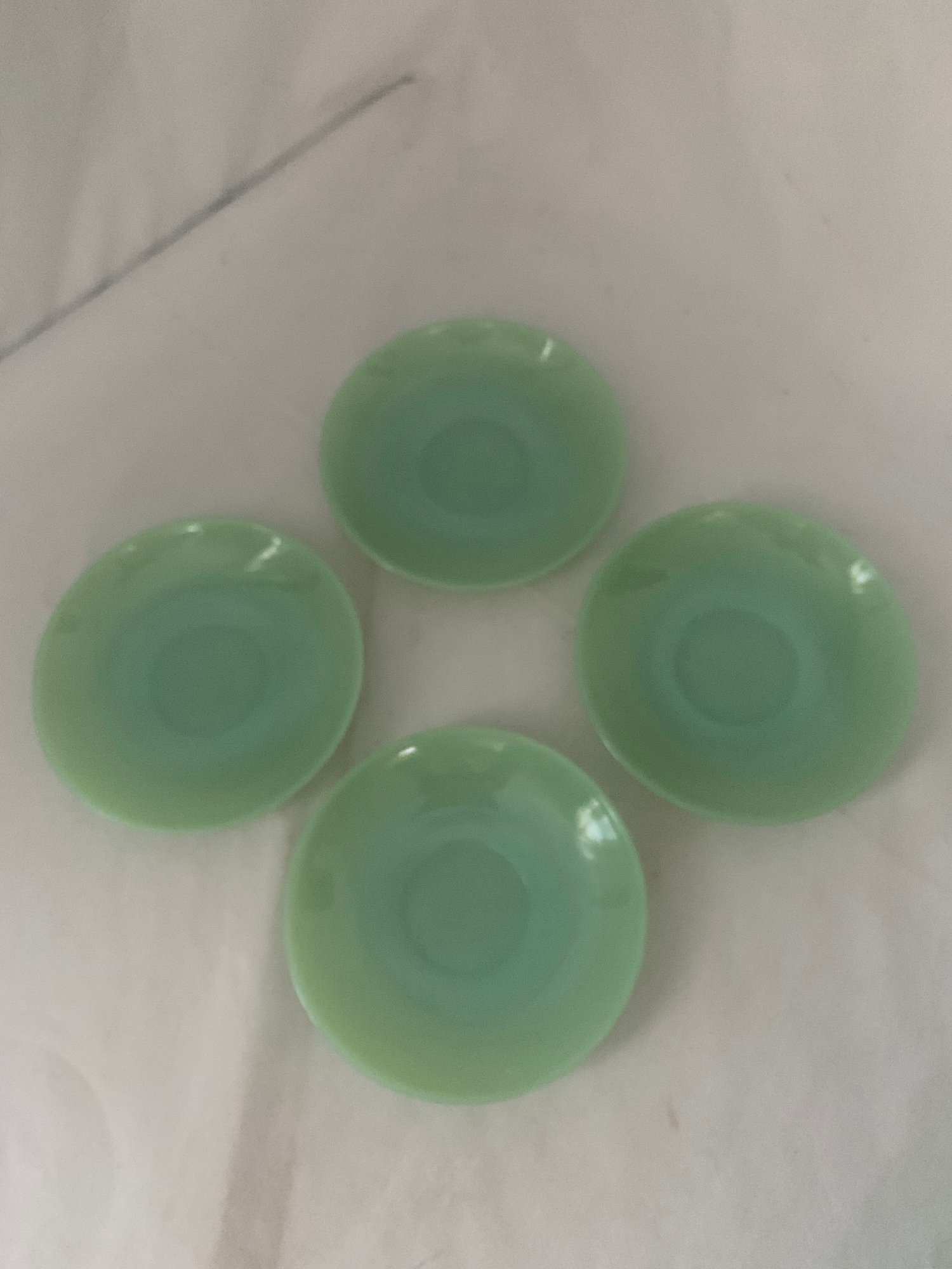 Set of ~4 Fire King Jadeite 1700 Line St. Denis cups & saucers.