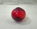 Antique American free-blown ruby glass witch ball with ground pontil opening. Attributed to Boston & Sandwich Glass Co. and others.