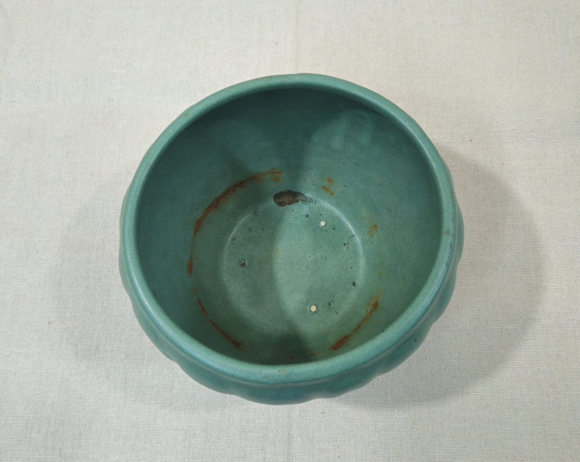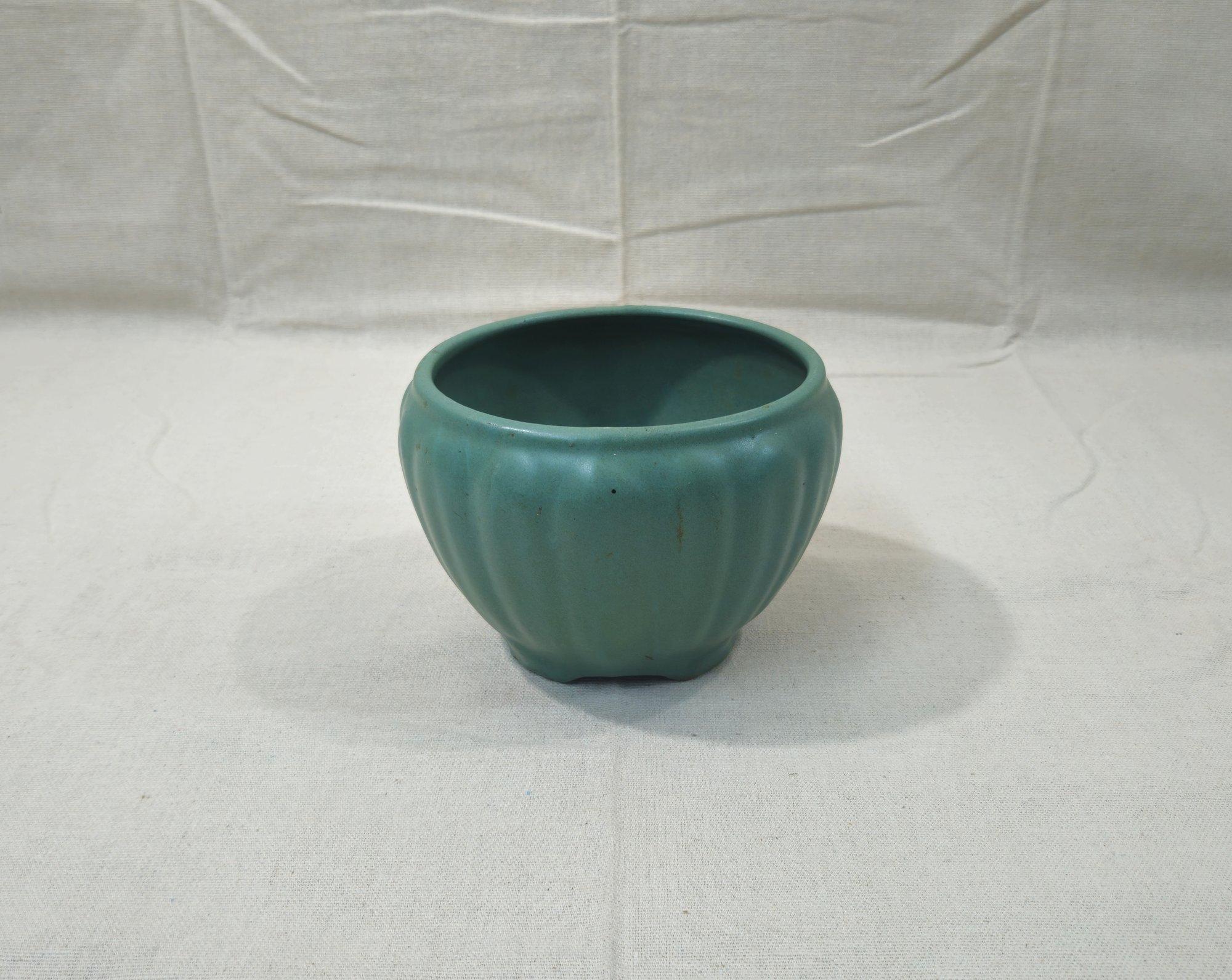 Antique arts & crafts pottery jardiniere planter with matte green glaze. Attributed to Zanesville Pottery Co.