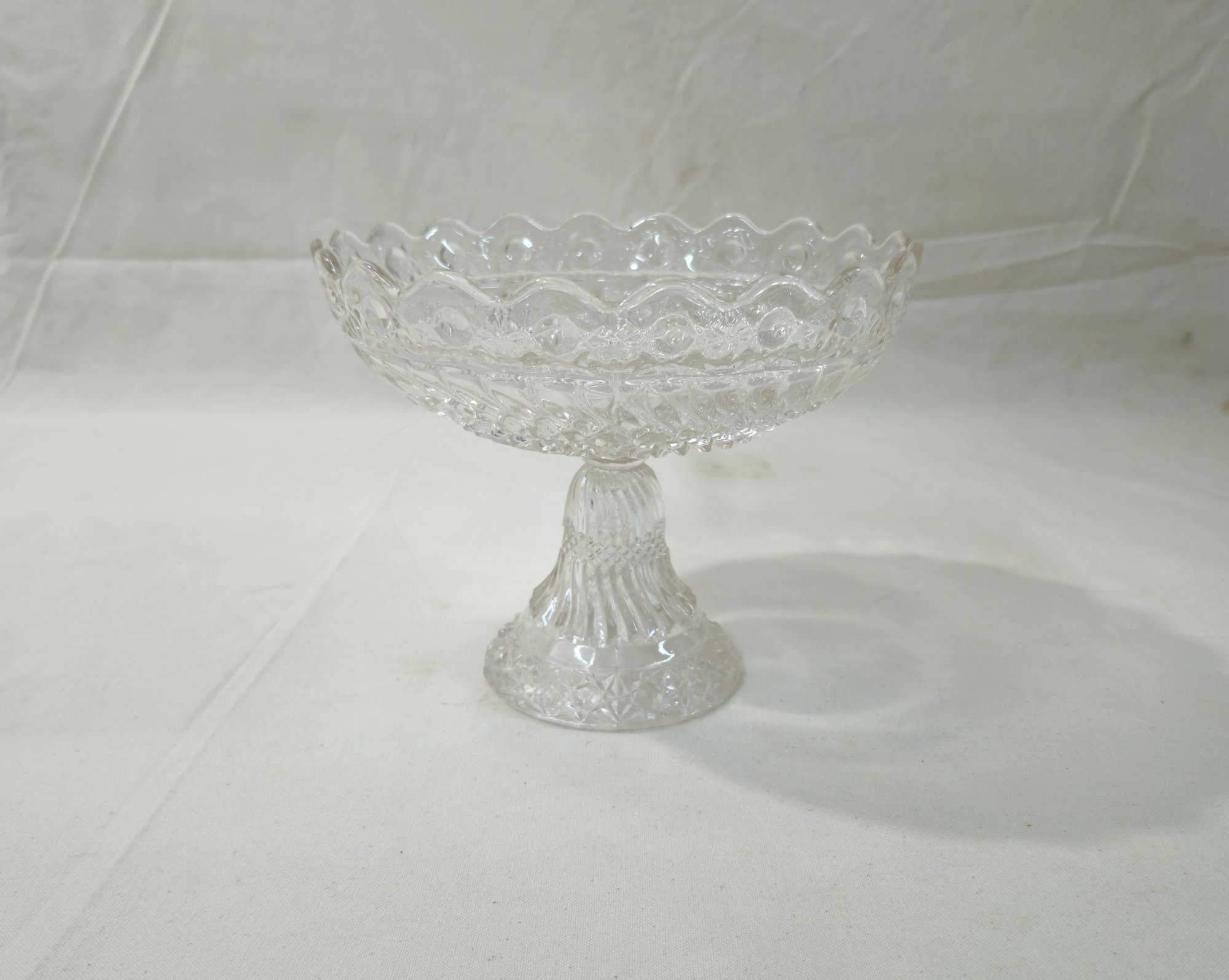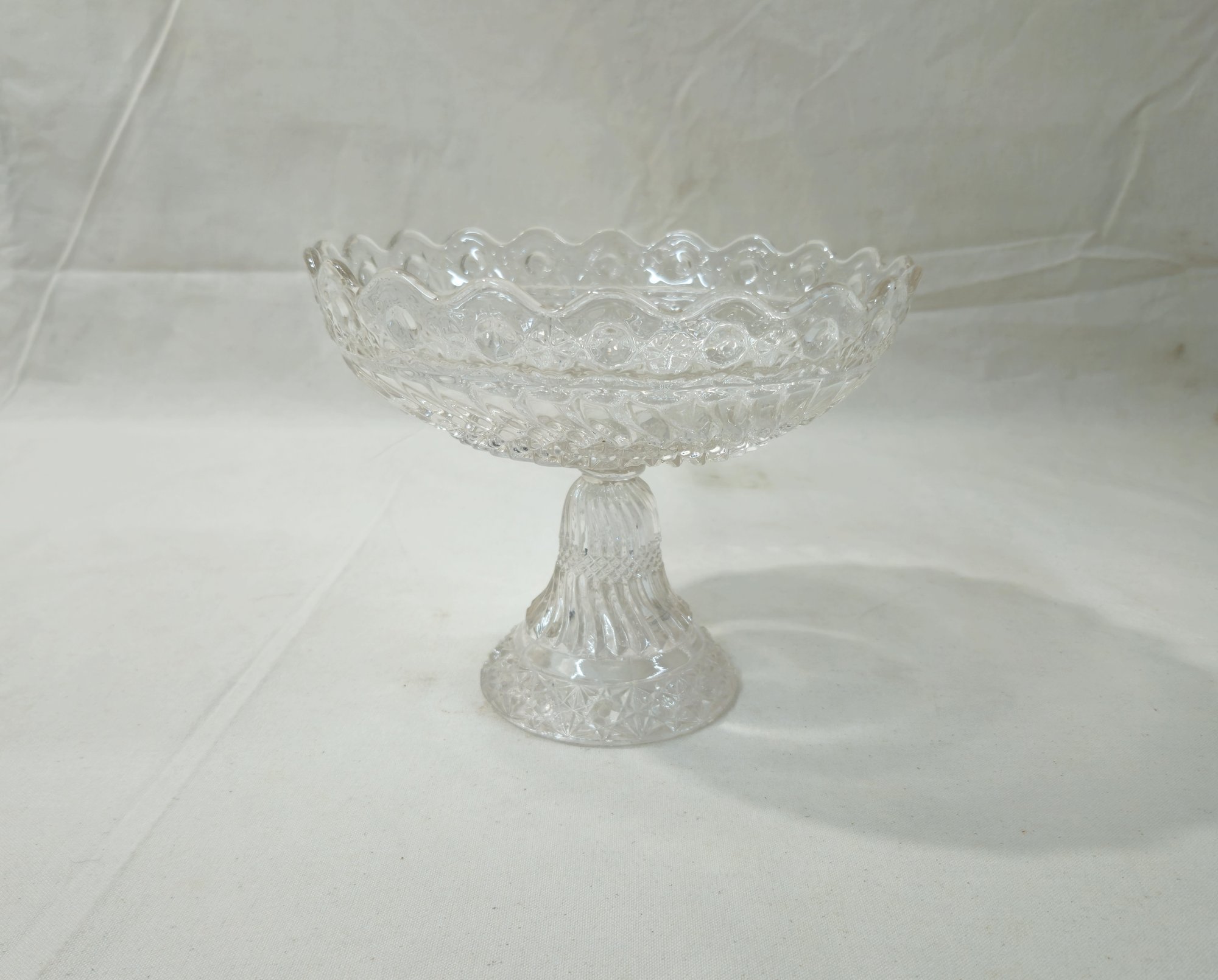 Notes: Antique EAPG Crescent Glass Compote is pre-owned showing signs of wear commensurate with age & use. Please review photos.