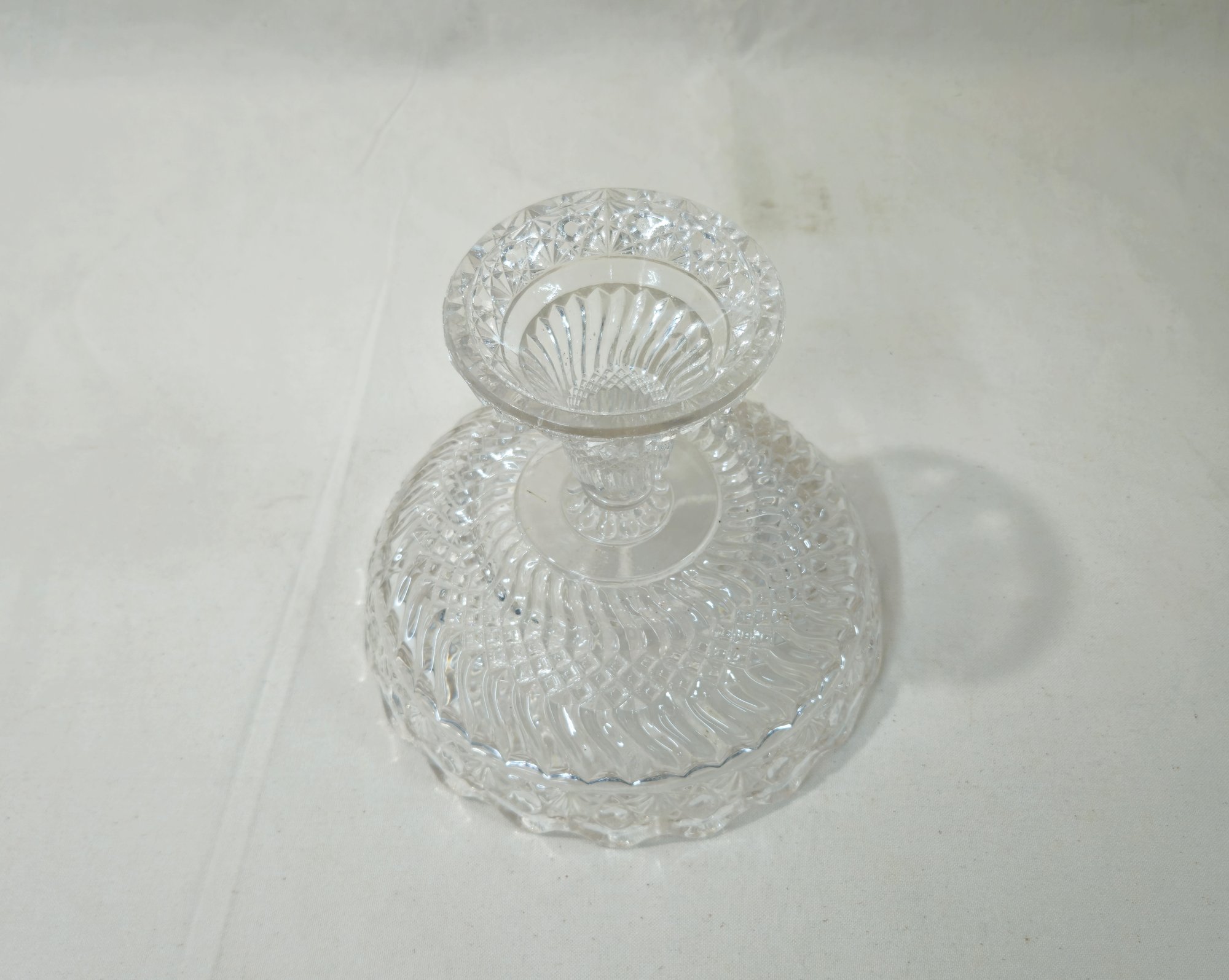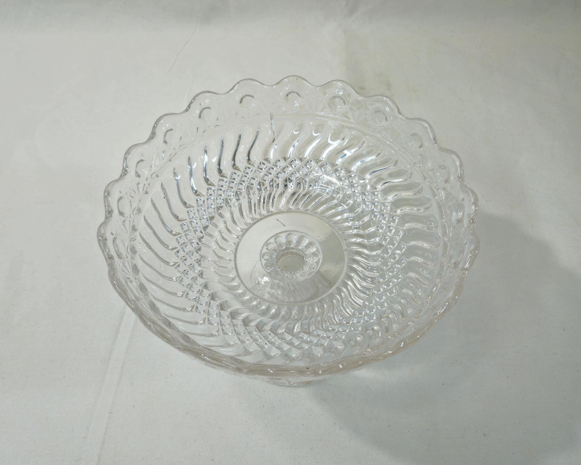 Antique early American pattern glass (EAPG) Crescent compote in clear glass. Produced by the Windsor Glass Co.