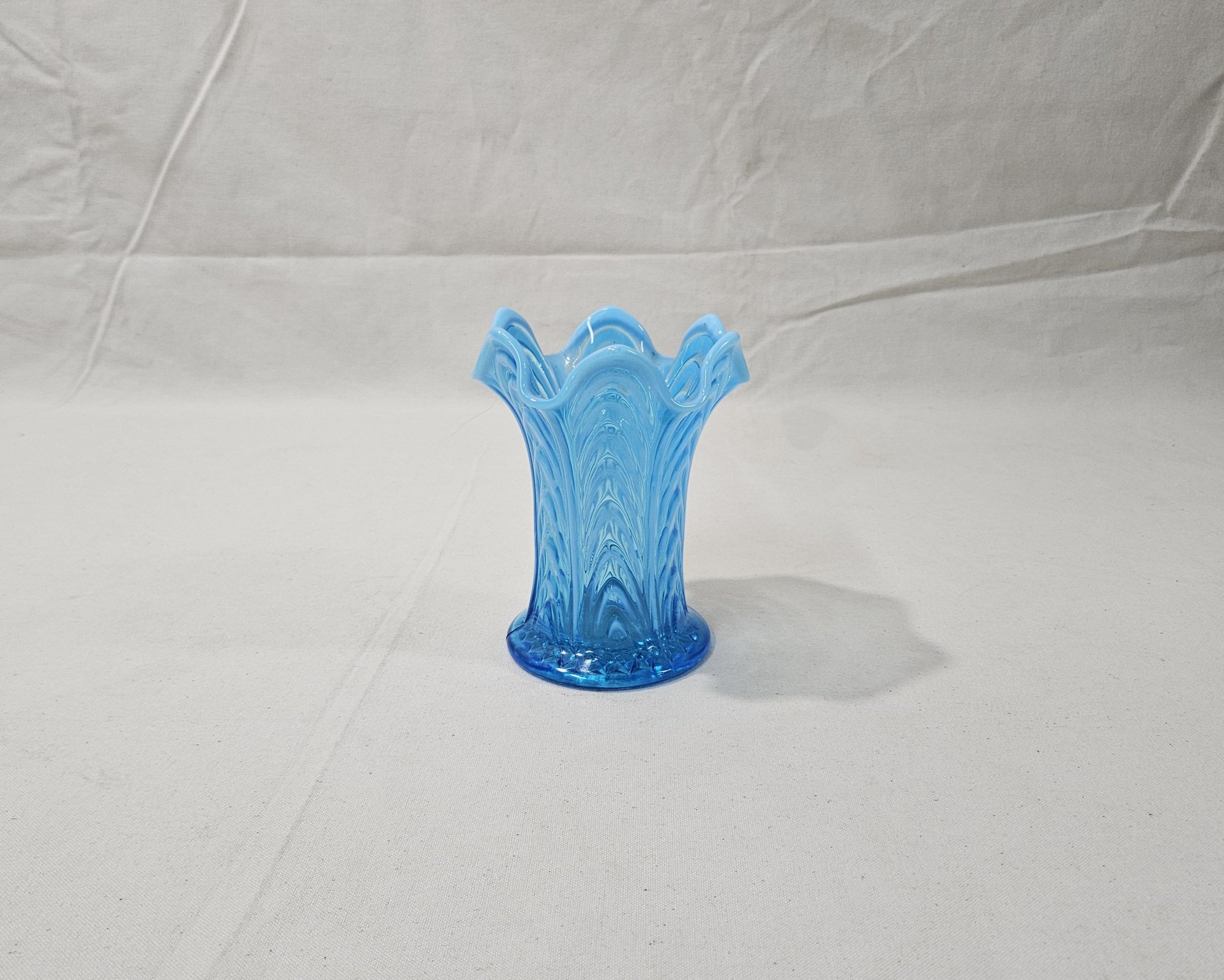 Antique Boggy Bayou blue opalescent glass vase. Produced by Fenton.