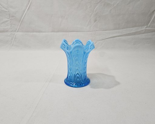 Notes: Antique Fenton Boggy Bayou Blue Opalescent Glass Vase is pre-owned showing signs of wear commensurate with age & use. Please review photos.