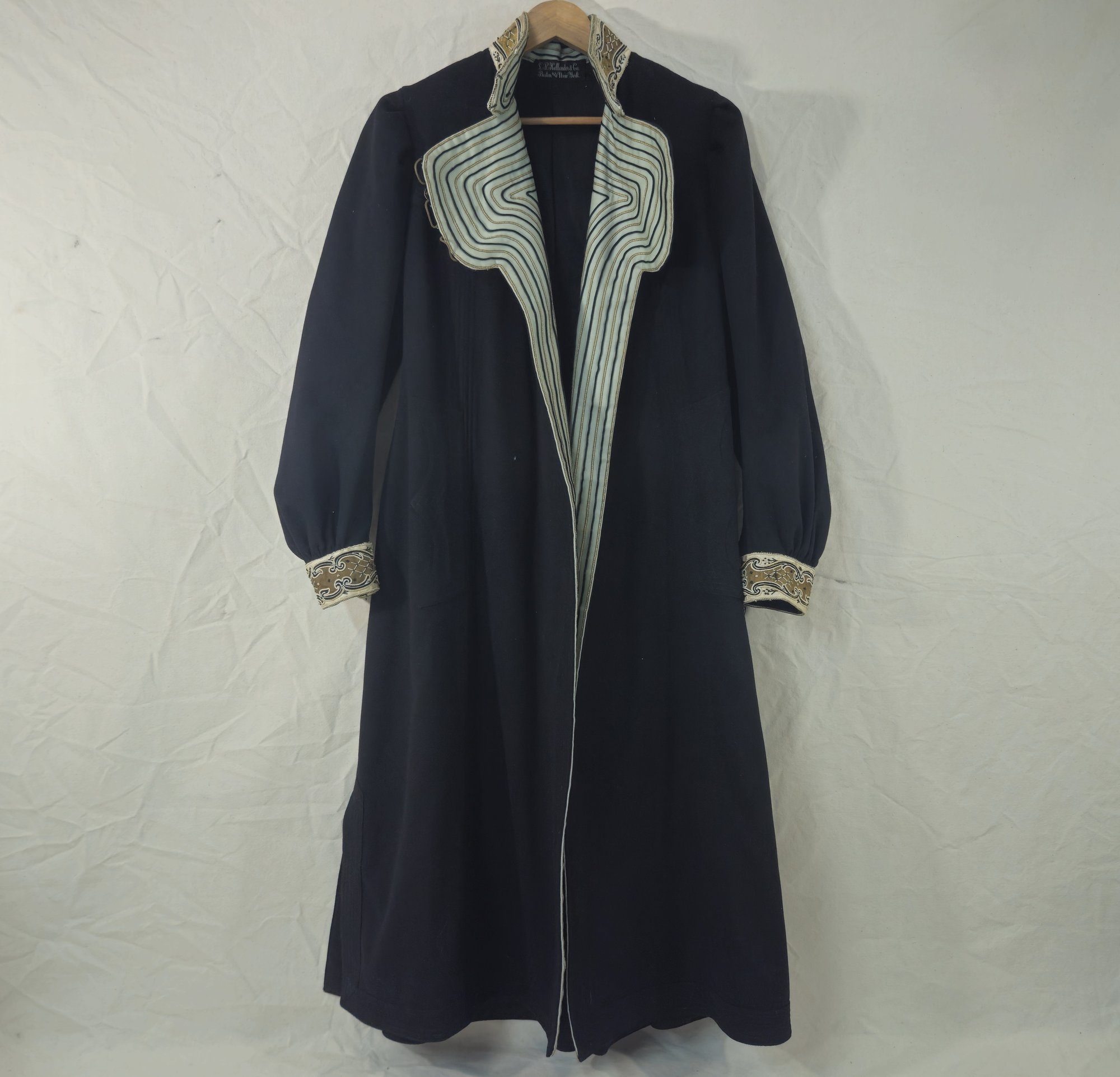 Antique Late Victorian Era evening overcoat with embellished neck, breasts, and cuffs. Produced and labeled by L.P. Hollander & Co./ Boston and New York.