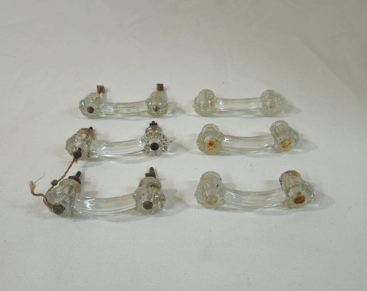Set of 6 antique pressed glass drawers pulls. Some retain hardware.