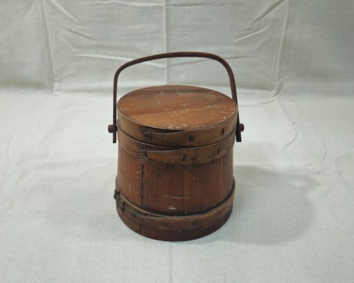 Antique primitive firkin with lid & handle.