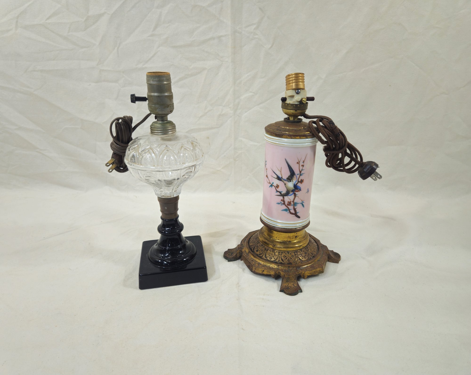 Notes: Antique Victorian Glass Electric Table Lamps are pre-owned showing signs of wear commensurate with age & use. Lamps are untested. Please review pictures.