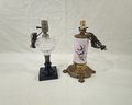 Group of ~ 2 antique Victorian glass electric table lamps.
