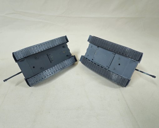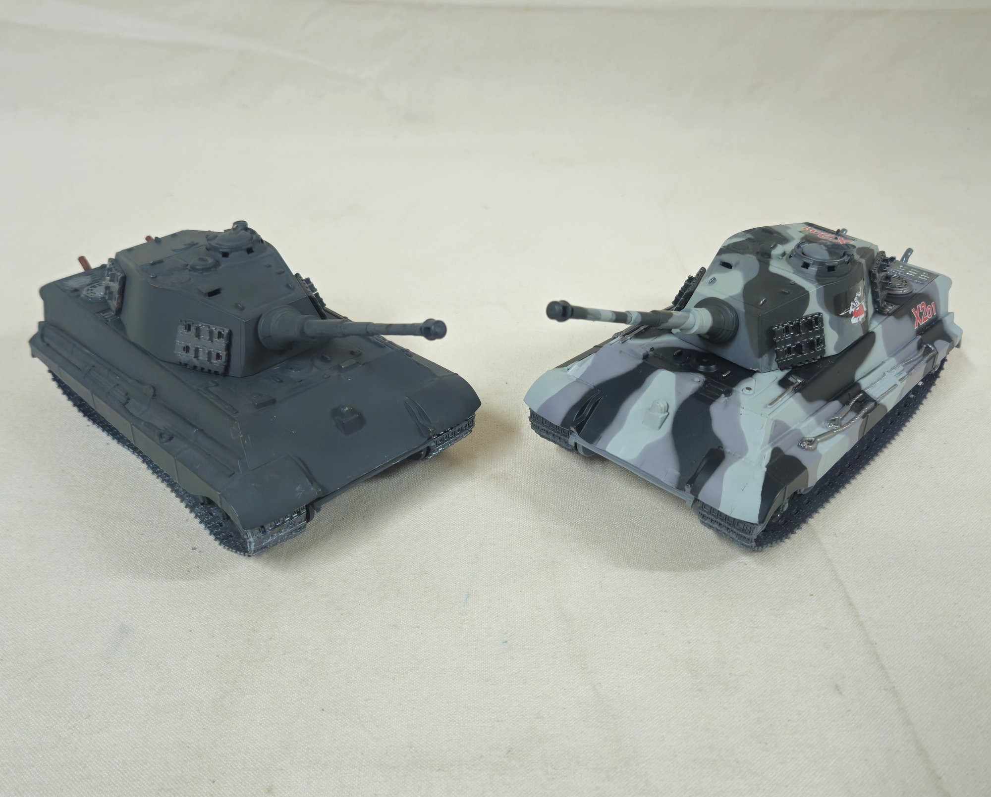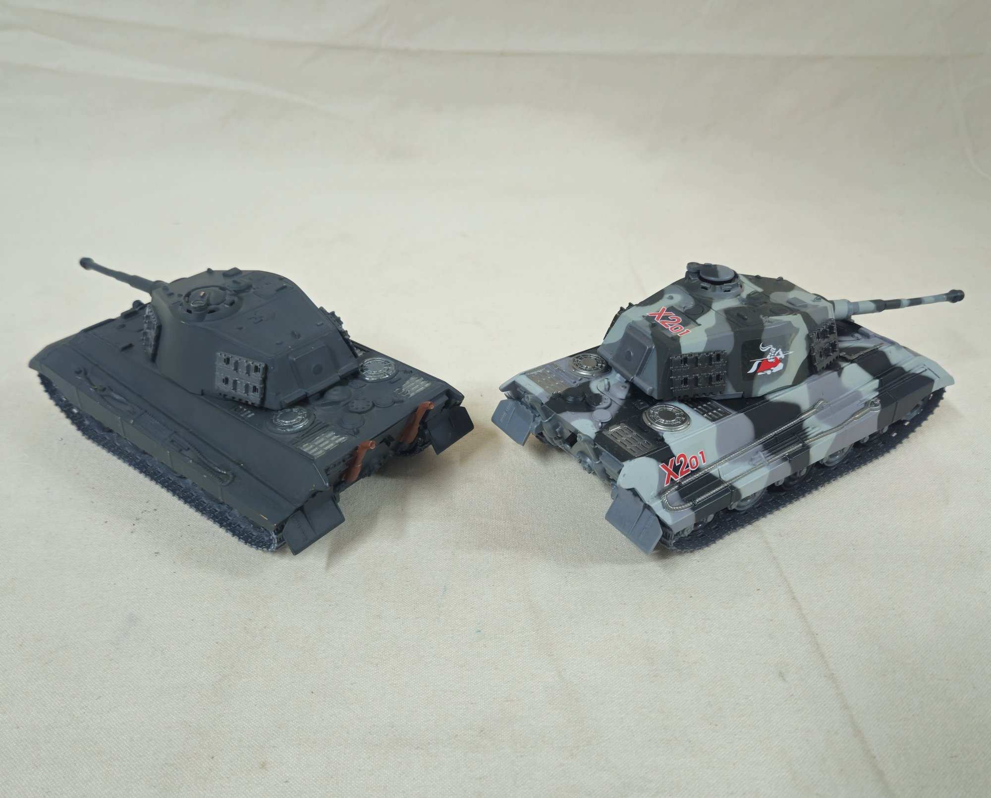 Notes: Assorted 1:32 Scale King Tiger Battery Operated Toy Tanks are pre-owned showing light signs of wear commensurate with age & use, both tested & working but Toy Mark tank finicky, and both toy tanks with no major apparent identifiable blemishes. Please review pictures.