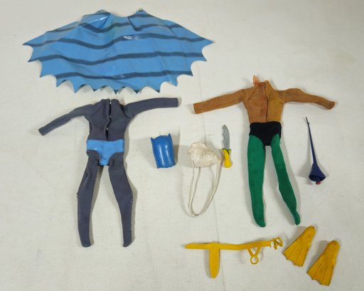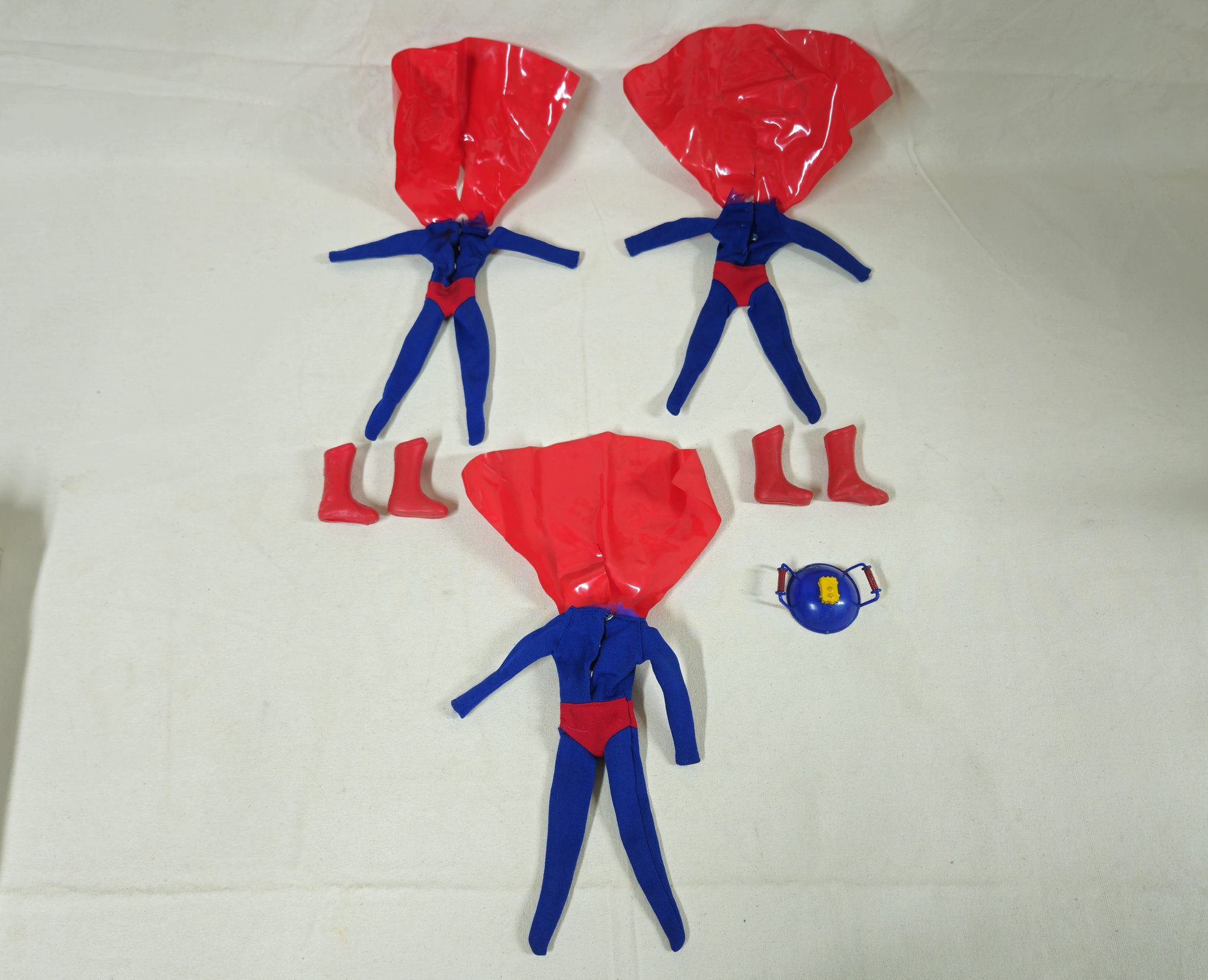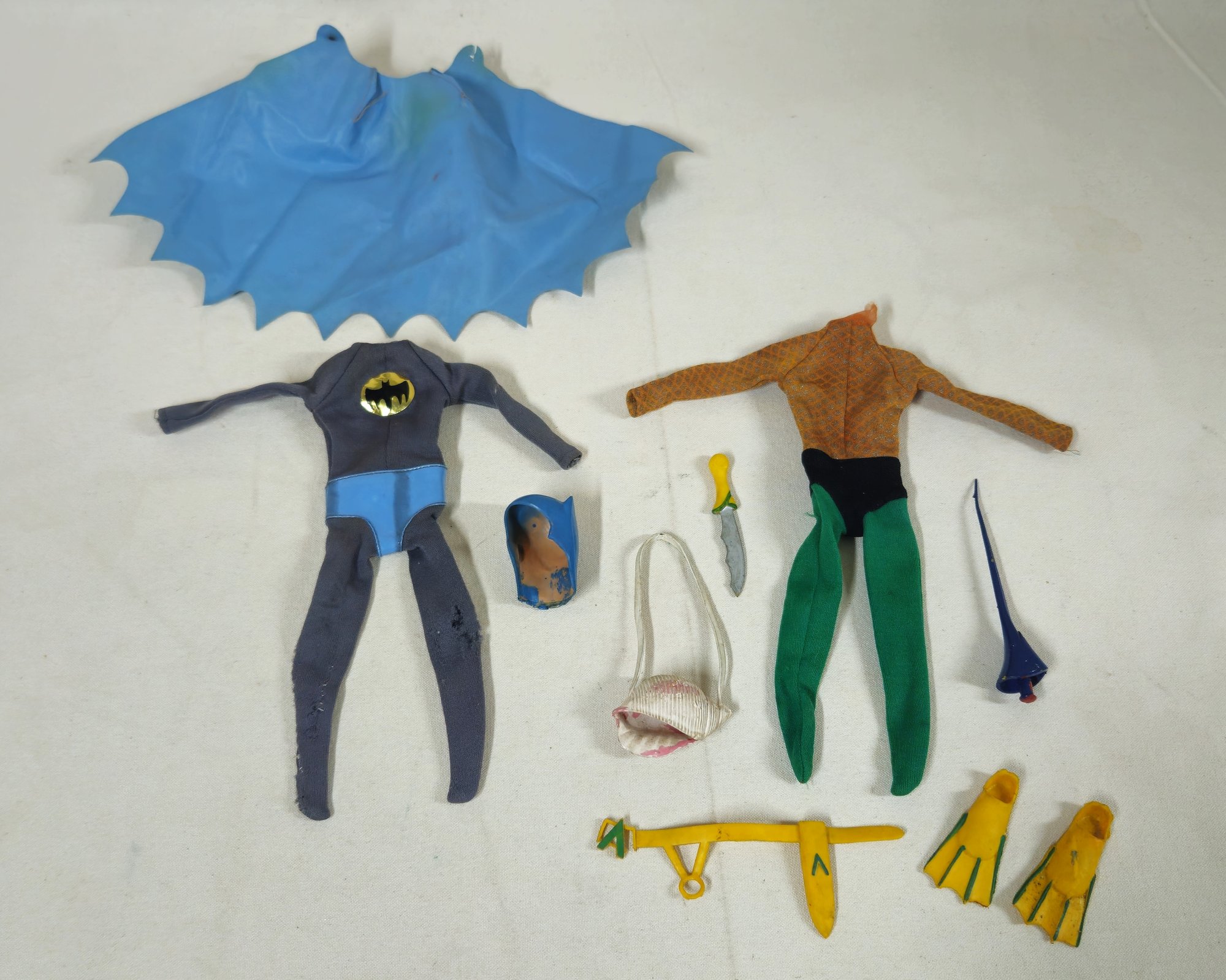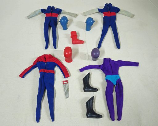 Notes: Assorted 1960's Ideal Captain Action Action Figures, Outfits, & Accessories are pre-owned showing light to moderate/heavy wear commensurate with age & use, some pieces may need cleaning, and all pieces may have various individual blemishes and flaws. Please review pictures.