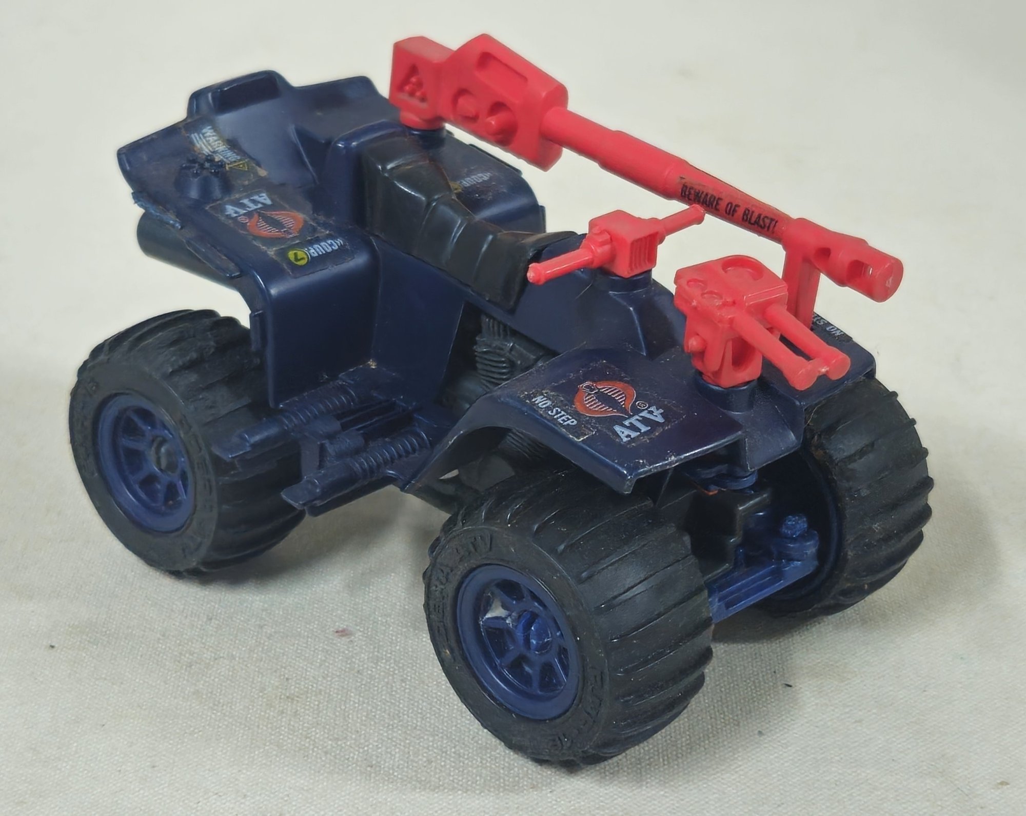 Group of assorted Hasbro GI Joe A Real American Hero (ARAH) vehicles including a Razor-Blade, a Vamp, a Ferret ATV, a Cobra Rat, a Patriot, & other various vehicle parts.
