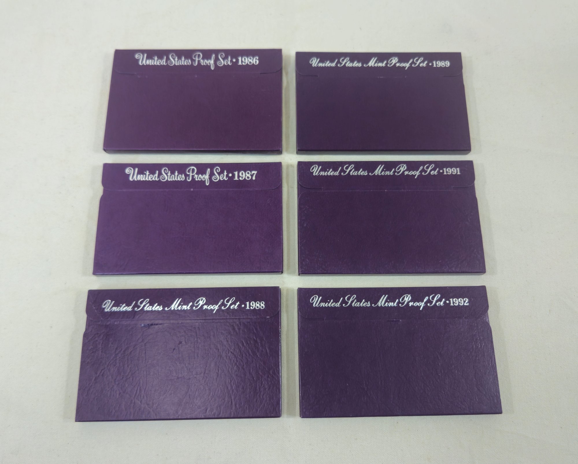 Group of ~6 assorted U.S. Mint Proof Sets including 1986, 1987, 1988, 1989, 1991, & 1992.