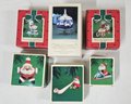 Group of ~6 assorted boxed Keepsake Ornaments including Grandchild's 1st Christmas, Baby's 1st Christmas, Snowmobile Santa, Santa Star, Alpine Elf, & First Christmas Together musical ornament. Produced by Hallmark Cards, Inc.