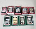 Group of ~9 assorted boxed Keepsake Collector's Series Nostalgic Houses and Shops Ornaments including 2-5 & 12-16. Produced by Hallmark Cards, Inc.