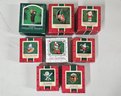Group of ~8 assorted boxed Keepsake Ornaments including Tipping the Scales, Walnut Shell Rider, Ski Tripper, Acorn Inn, Rah Rah Rabbit, Child's 3rd Christmas, Daughter, & Mouse in the Moon. Produced by Hallmark Cards, Inc.