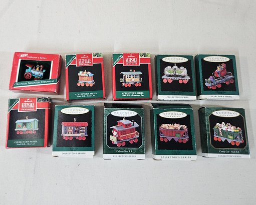 Notes: Assorted 1989-1998 Hallmark Keepsake Collector's Series Noel R.R. Miniature Ornaments are pre-owned showing light to minor signs of wear commensurate with age & use, ornaments retain original boxes, boxes may have some light to minor blemishes or flaws, and ornaments have no major apparent identifiable blemishes or flaws. Please review pictures.