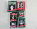 Group of ~6 assorted boxed Keepsake Ornaments including Teacher, Nutshell Dreams, Country Angel, Wiggly Snowman, The First Christmas, & Owliday Greetings. Produced by Hallmark Cards, Inc.