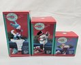 Group of ~3 assorted boxed stocking hangers including Bunny on Skis, Cheerful Snowman, & Kitten in Basket. Produced by Hallmark Cards, Inc.