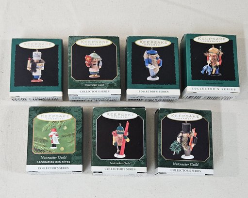 Group of ~7 assorted boxed Hallmark Keepsake Collector's Series Nutcracker Guild Miniature Ornaments including 1-7. Produced by Hallmark Cards, Inc.