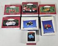 Group of ~7 assorted boxed Keepsake Collector's Series Kiddie Car Classics Ornaments including 1, 5-10. Produced by Hallmark Cards, Inc.