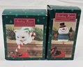 Group of ~2 assorted boxed stocking hangers including Christmas Kitten & Snowman. Produced by Hallmark Cards, Inc.