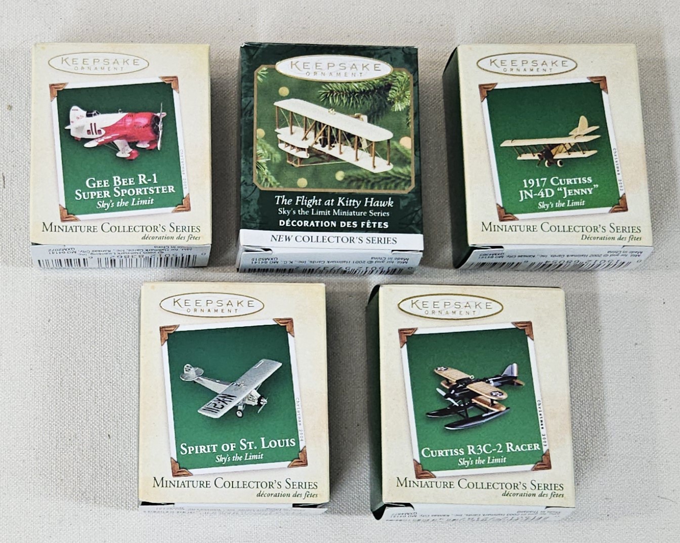 Group of ~5 assorted boxed Hallmark Keepsake Collector's Series Sky's the Limit Miniature Ornaments including 1-5. Produced by Hallmark Cards, Inc.