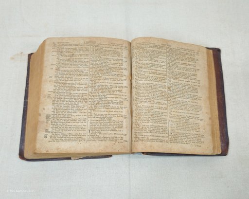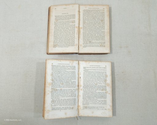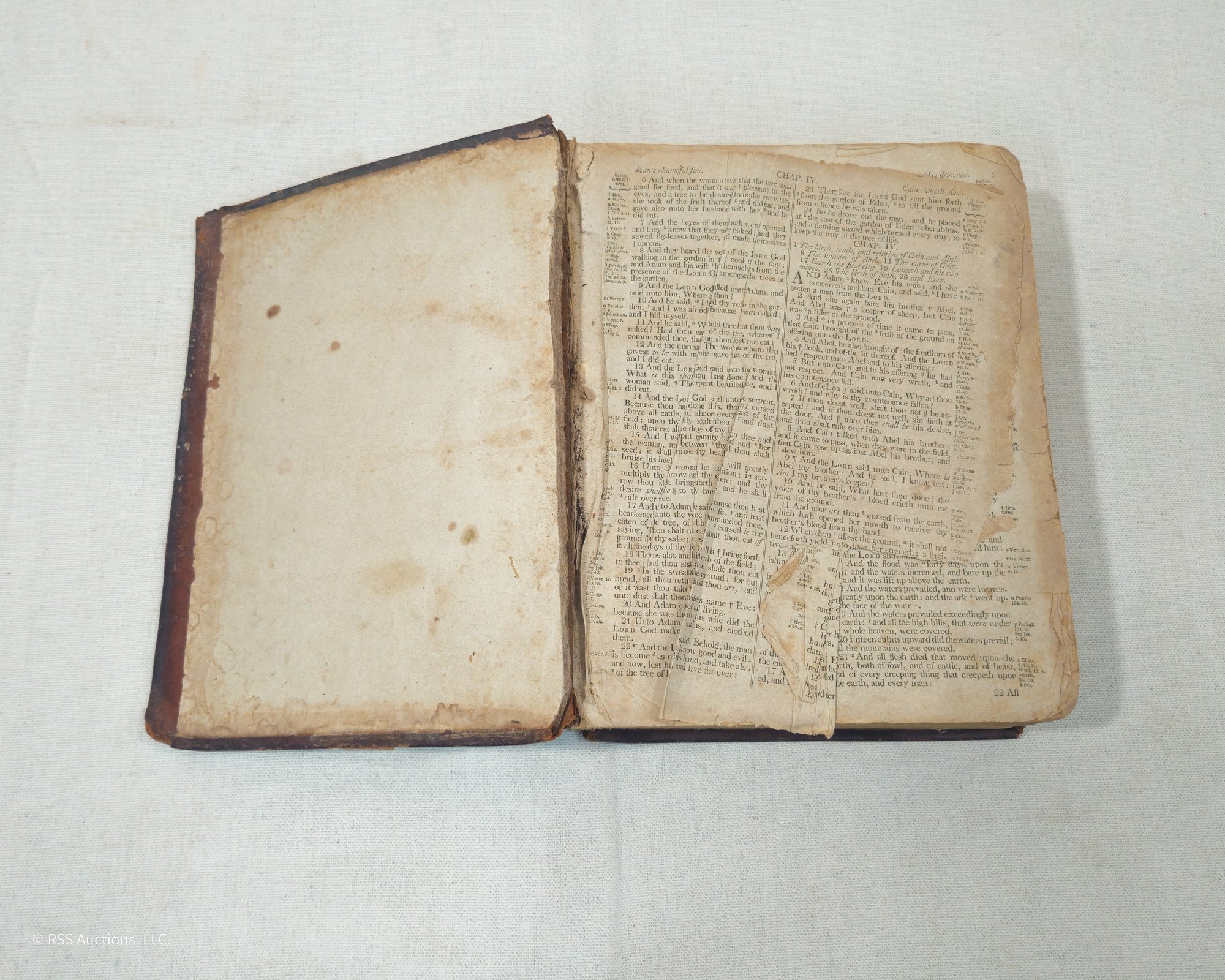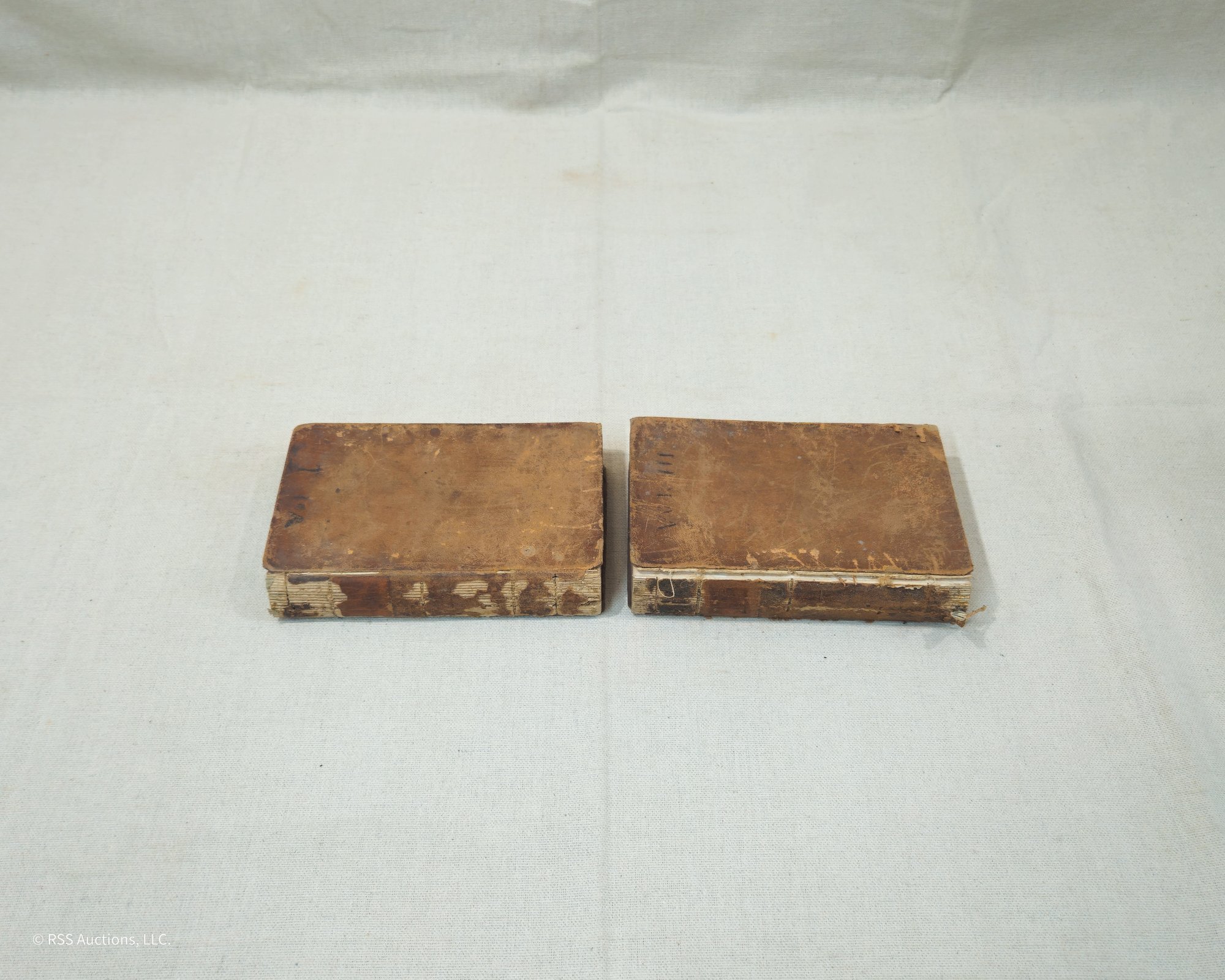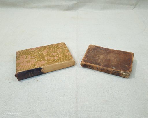 Notes: Assorted Antique 19th Century Leather Bound Books are pre-owned showing minor to heavy wear commensurate with age & use and individually in various stages of condition. Bible missing pages. Essays By Ralph Waldo Emerson missing front and back covers.