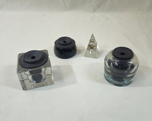 Group of assorted antique glass inkwells. Various makers.