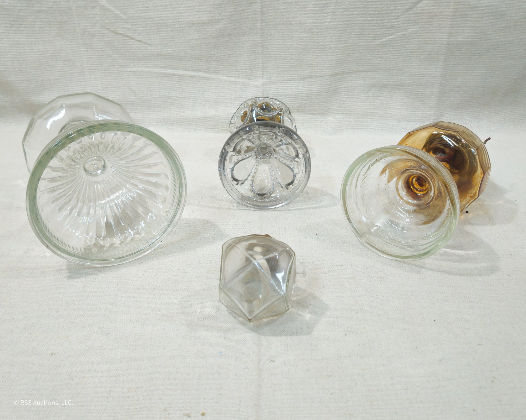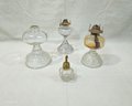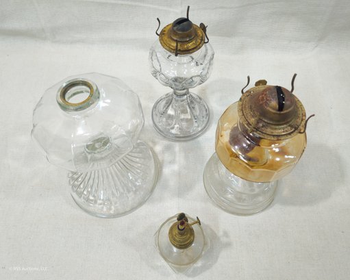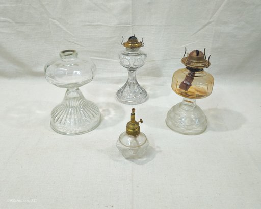 Group of ~4 assorted antique & vintage glass oil lamps in various patterns.