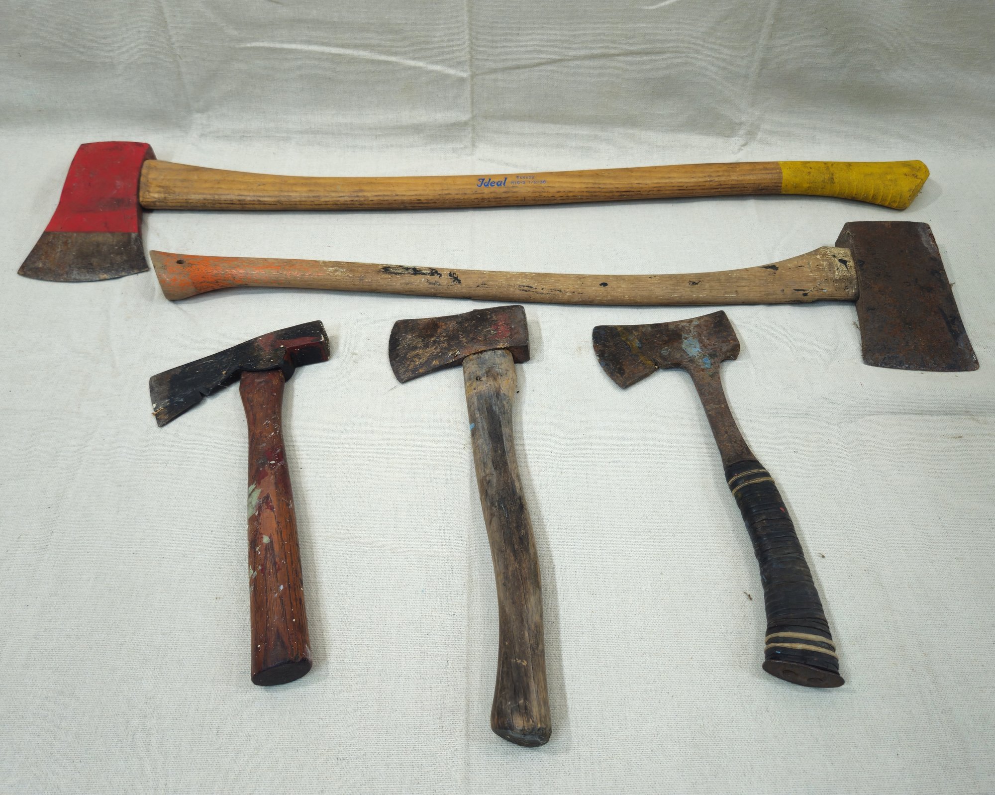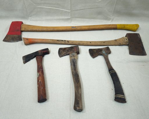 Group of assorted 2 axes & 3 hatchets.
