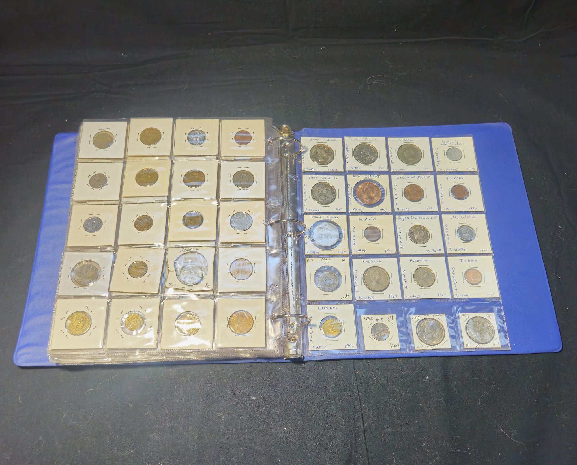 Binder with ~259 assorted France, Middle East, & South Pacific foreign coins.