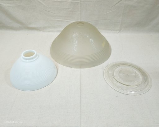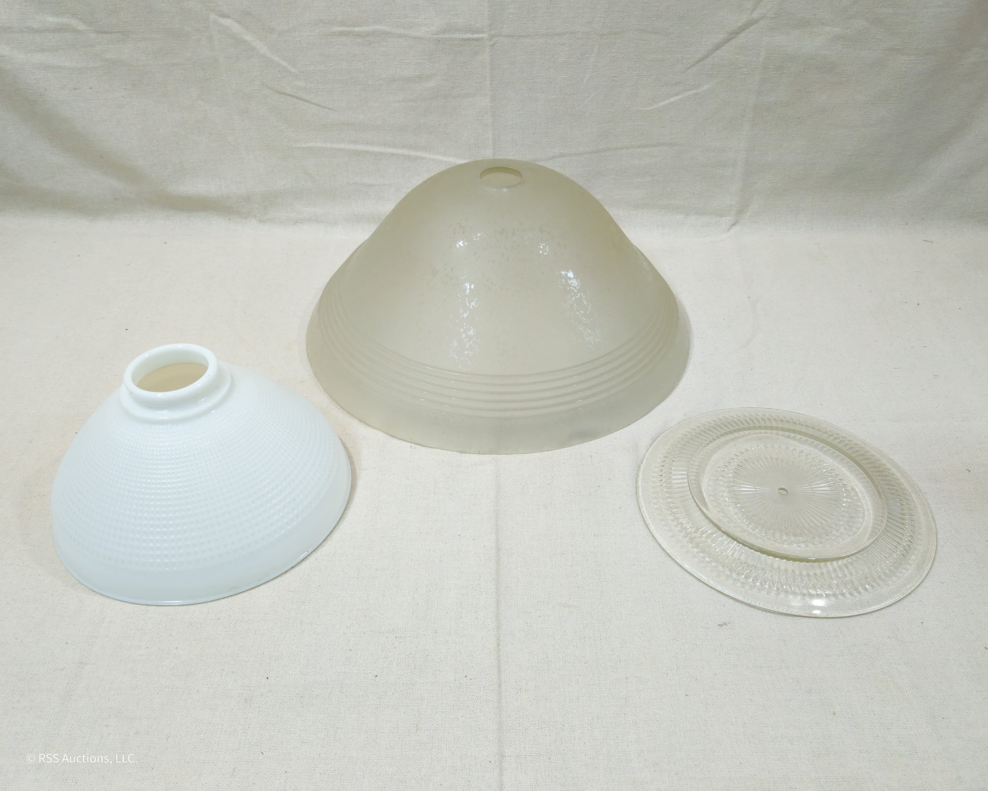 Notes: Assorted Glass Lamp/Light Shades are pre-owned showing minimal signs of wear commensurate with age & use and individually have no major apparent identifiable blemishes or flaws. Please review pictures.