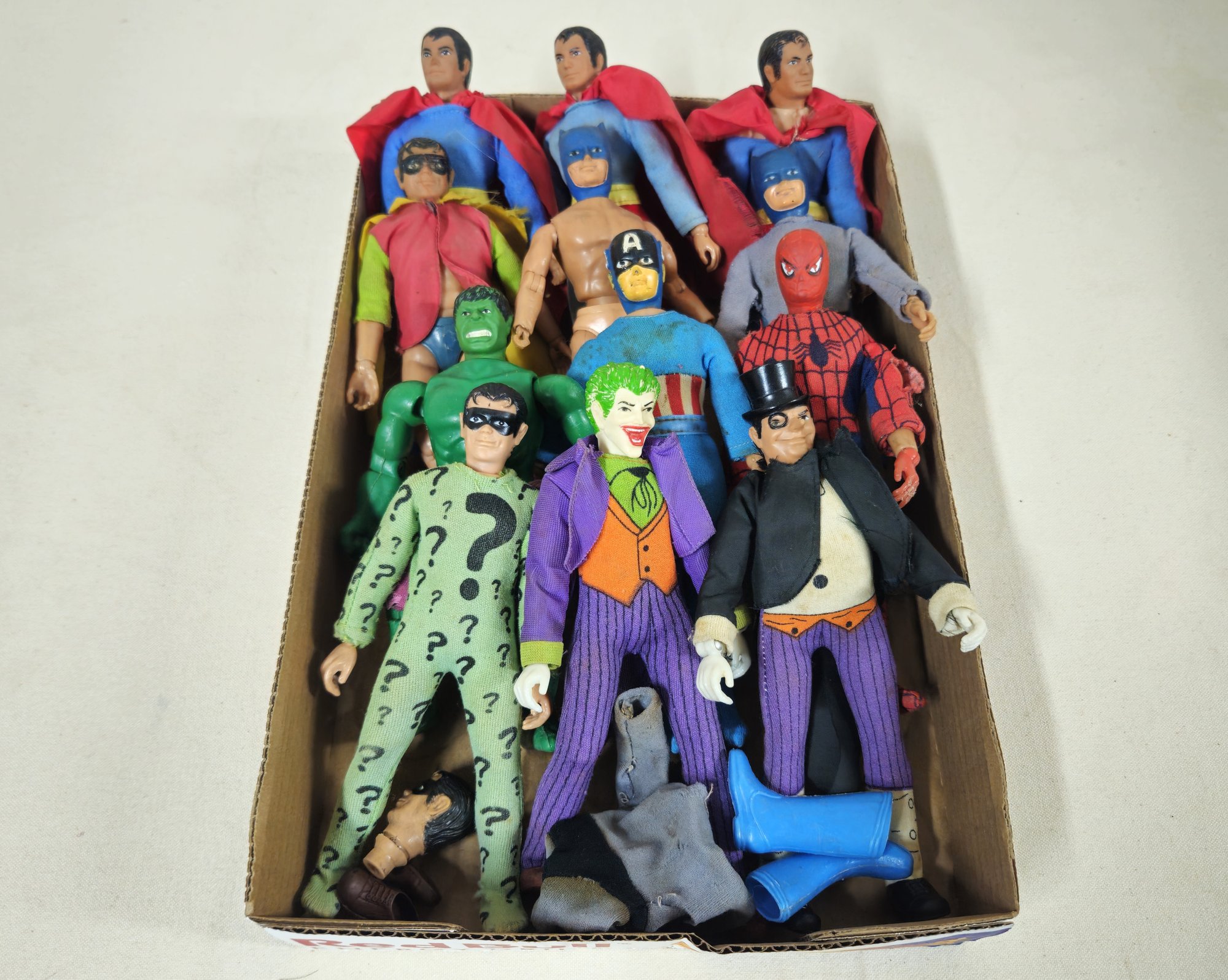 Notes: Assorted Mego Comic Action Figures are pre-owned showing light to moderate/heavy wear commensurate with age & use, action figures may be incomplete, action figures may need cleaning, and all action figures may have various individual blemishes & flaws. Please review pictures.