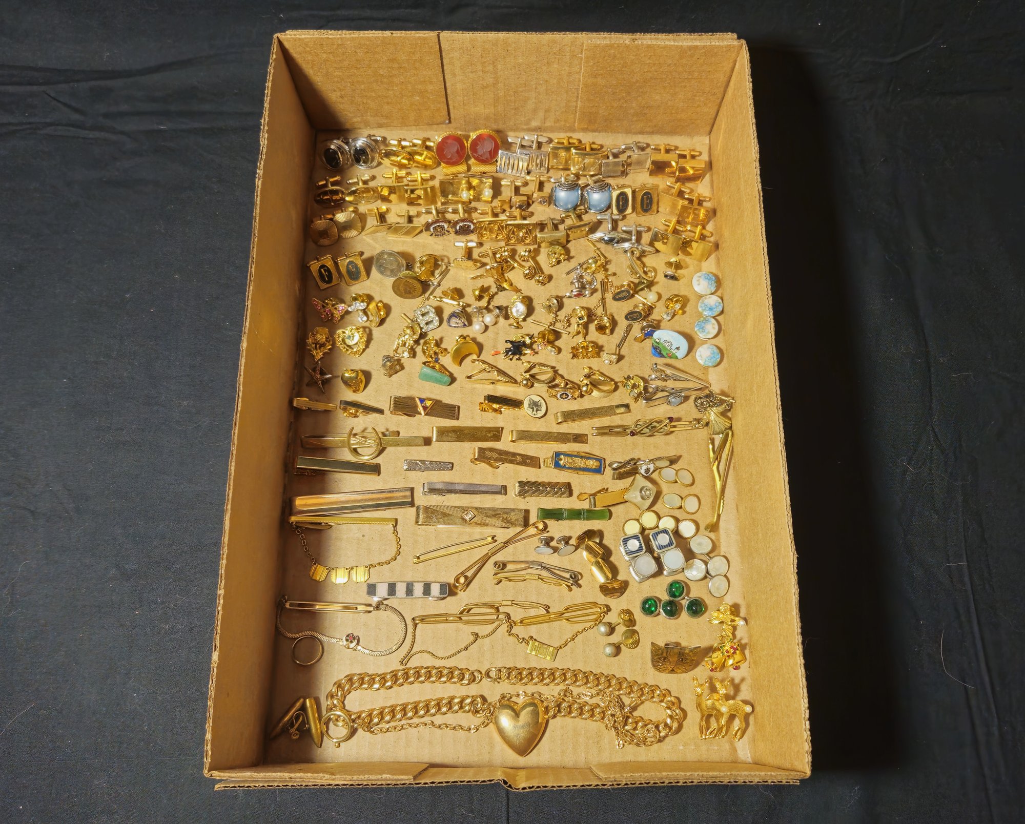 Group of assorted men's costume jewelry accessories & other.