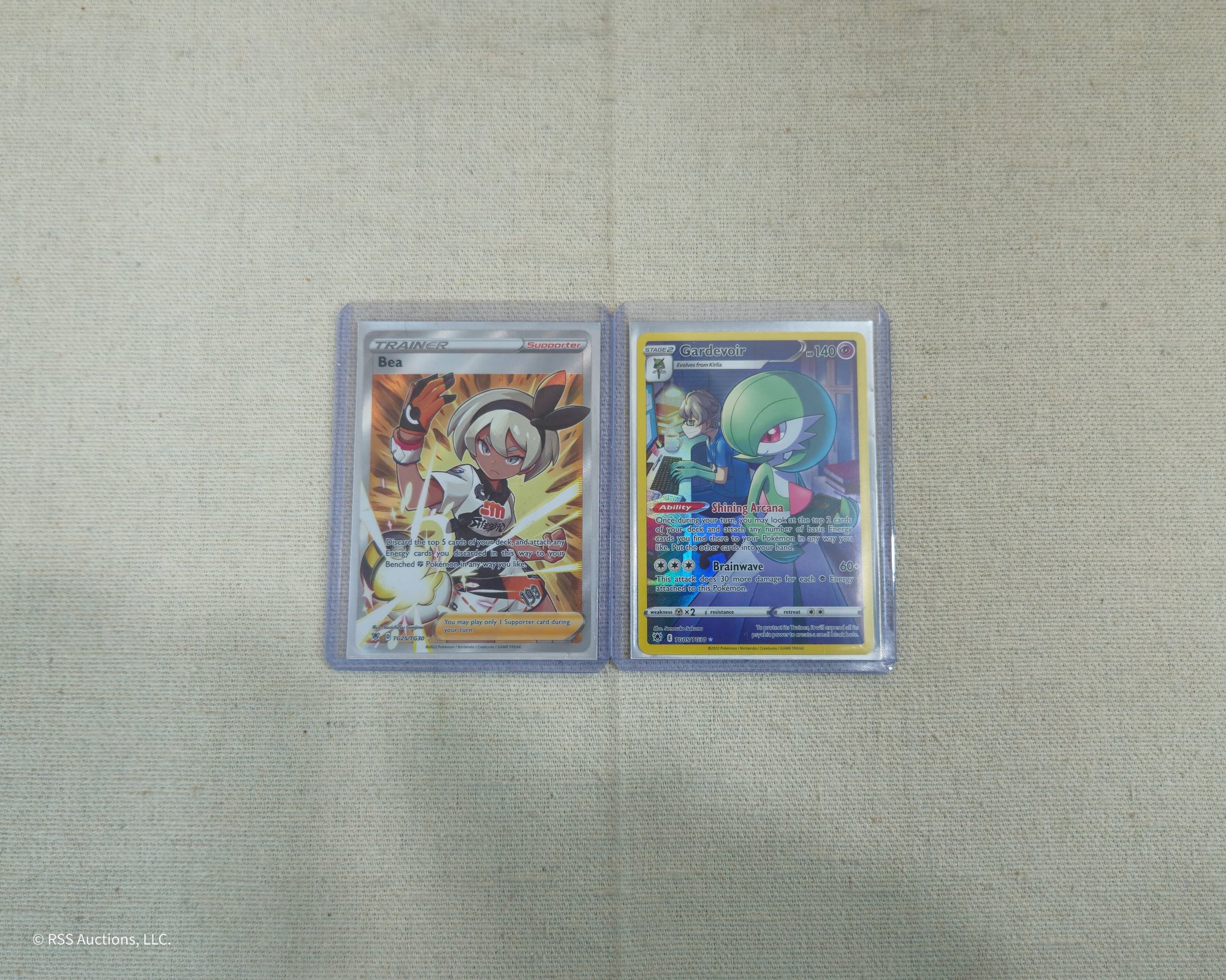 Group of ~2 assorted Pokemon Sword & Shield: Astral Radiance trading cards including a Bea #TG25/TG30 and a Gardevoir #TG05/TG30.
