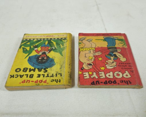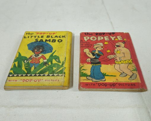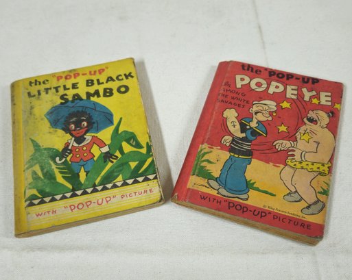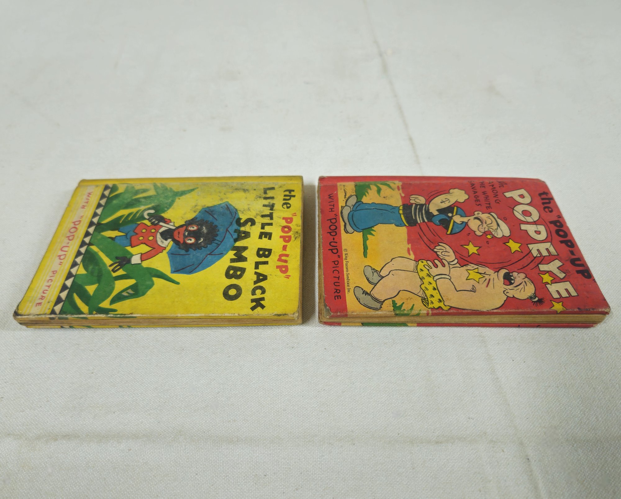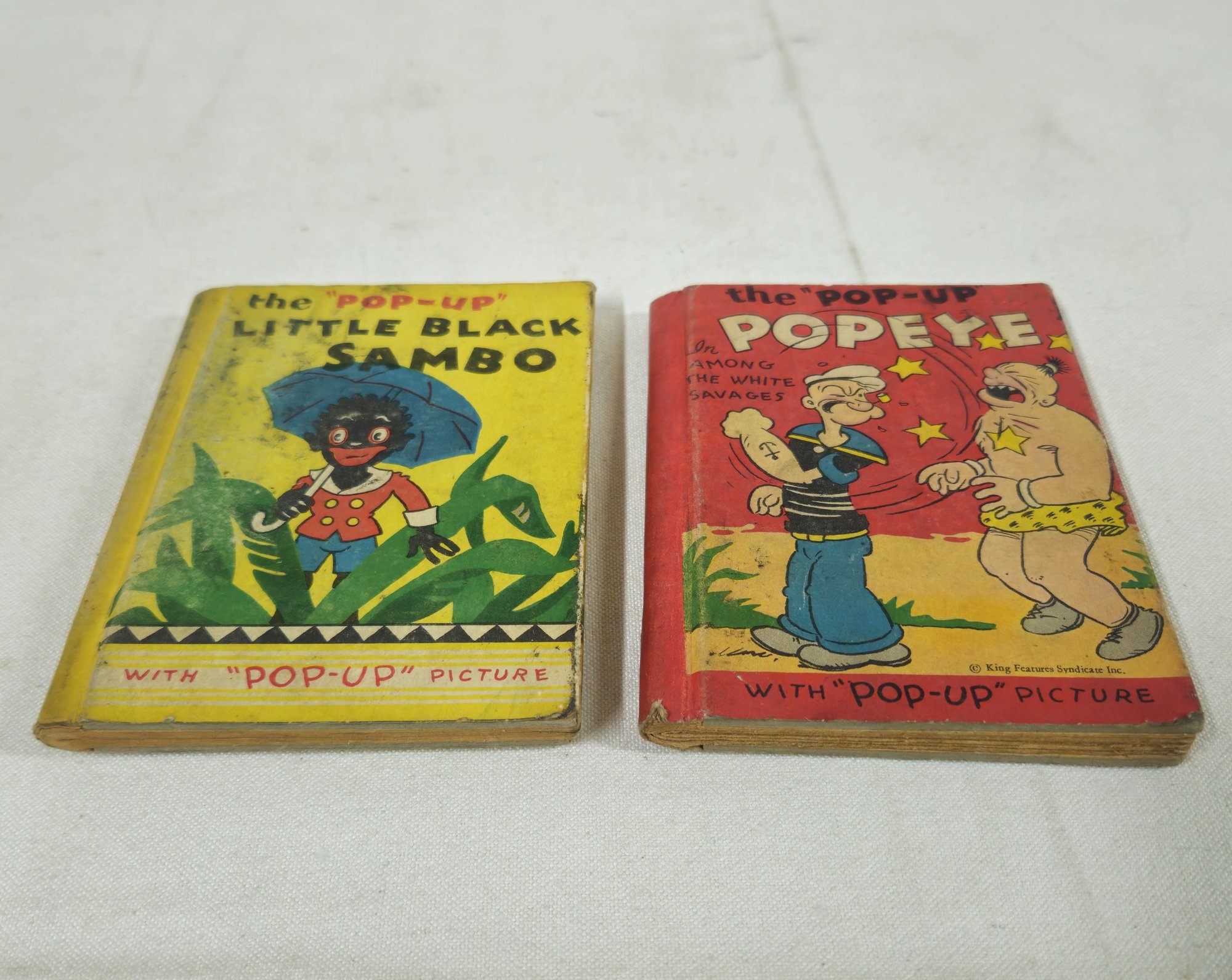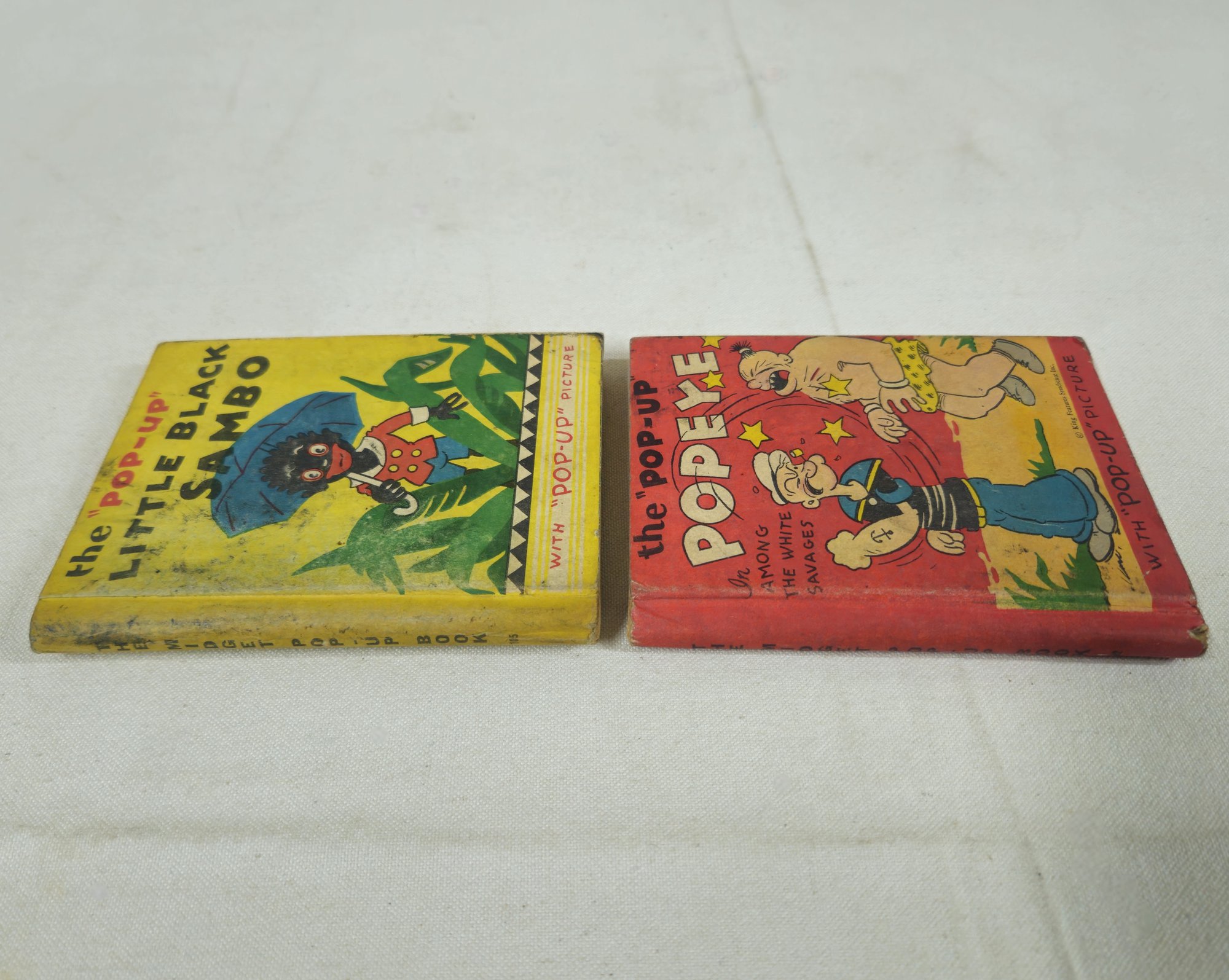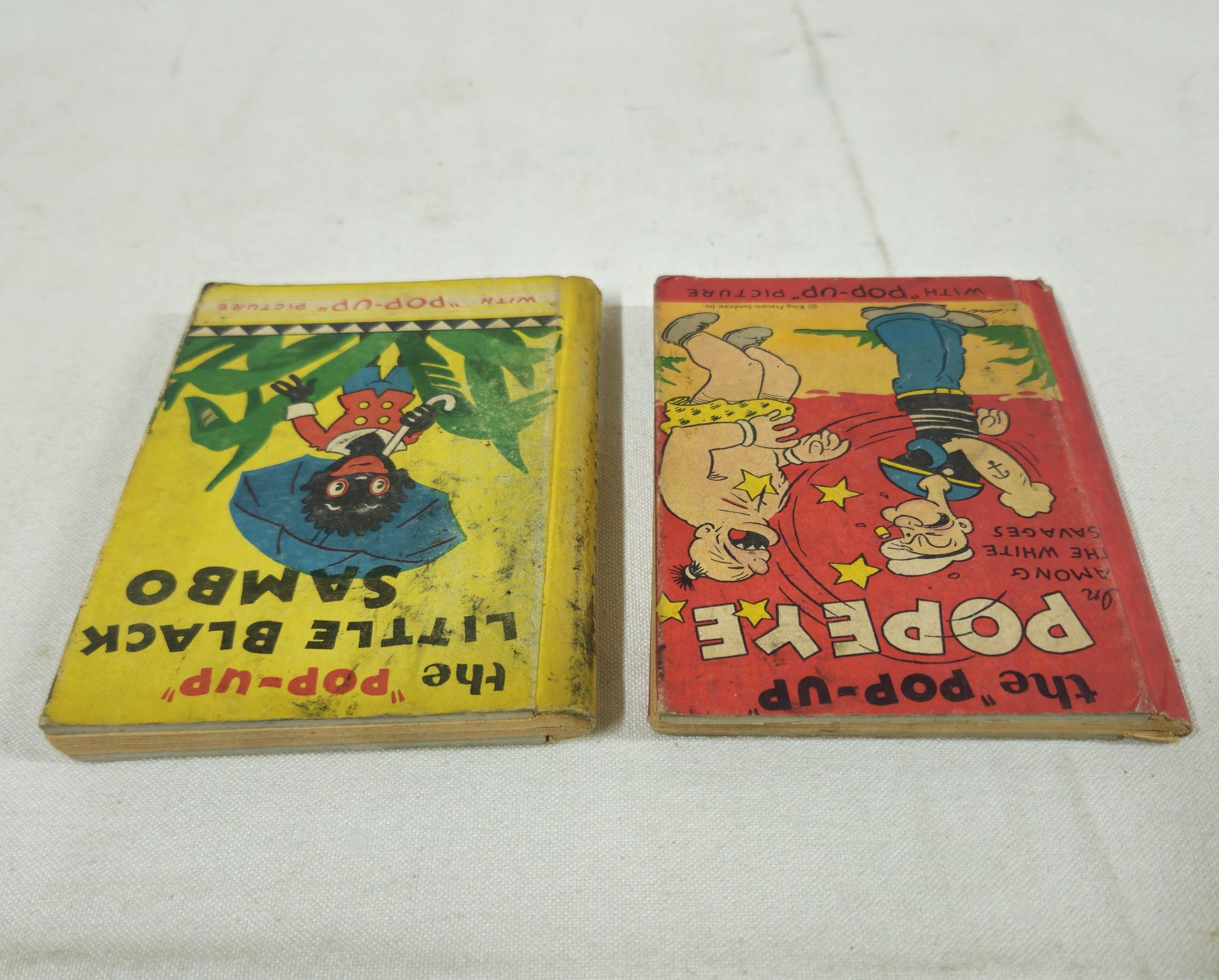 Group of 2 assorted "Pop-Up" picture books including Popeye in Among the White Savages & Little Black Sambo published by Blue Ribbon Press New York.