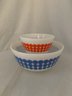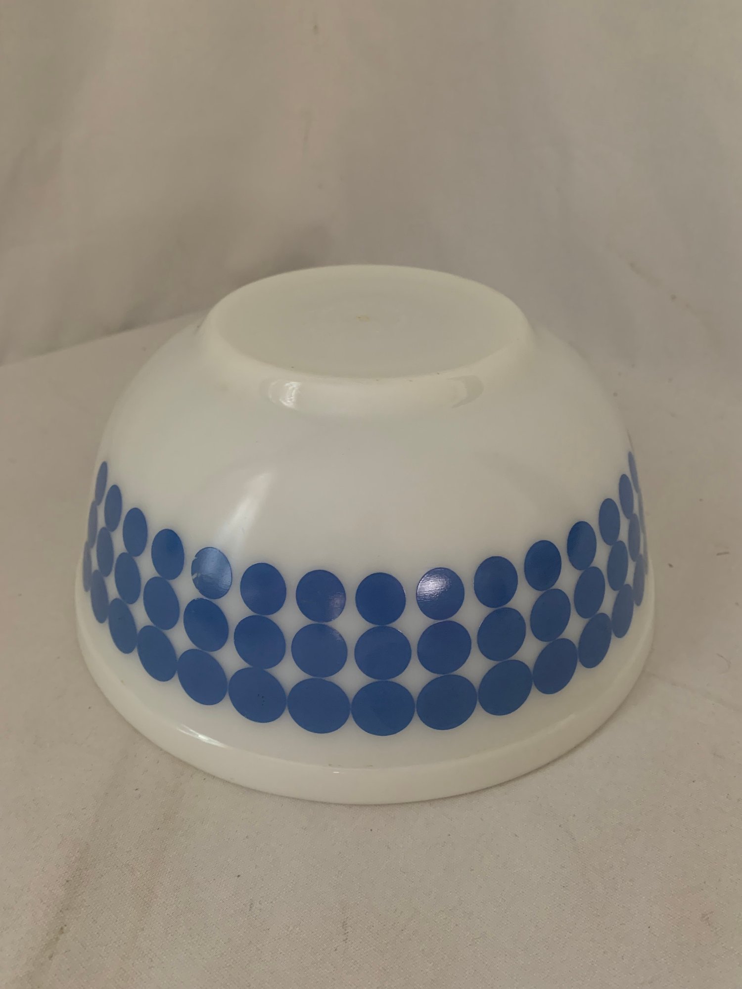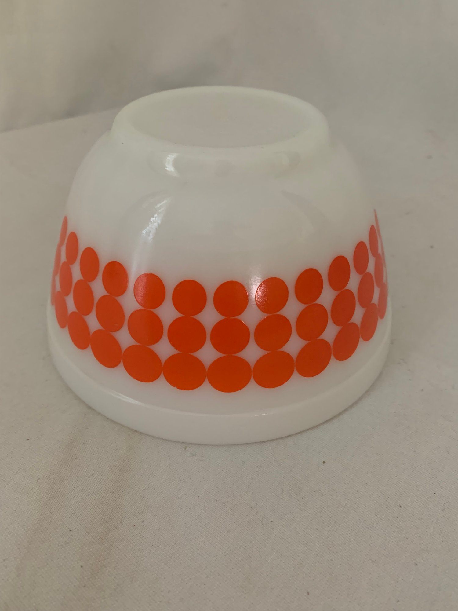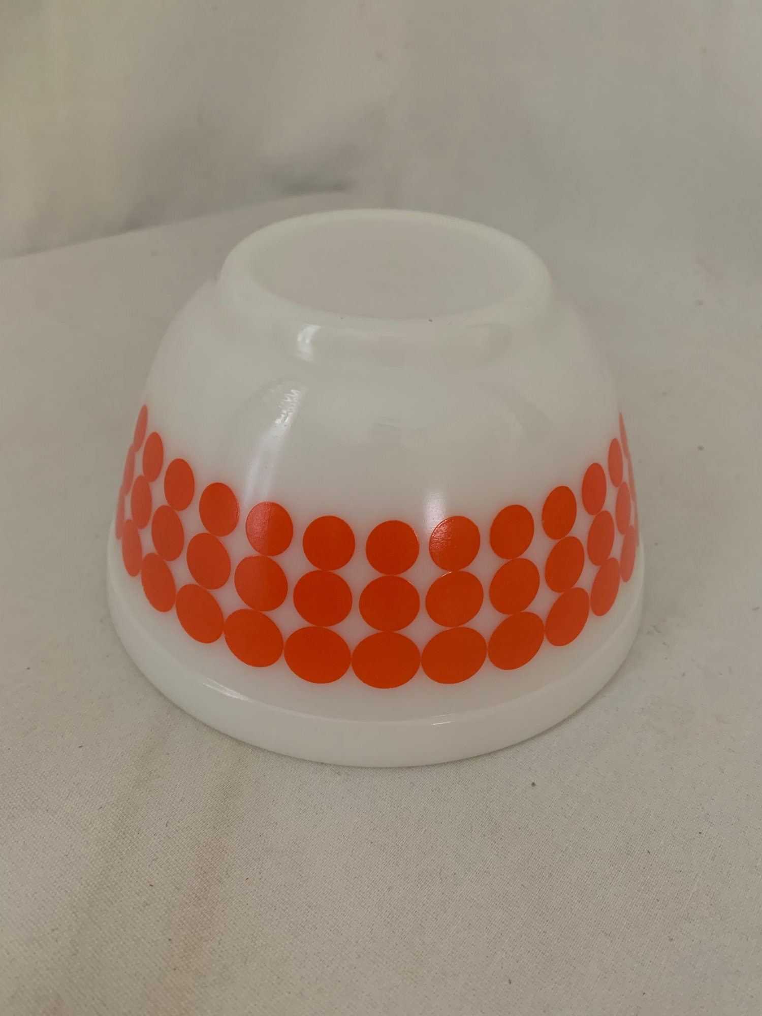 Notes: Assorted Pyrex Dot Mixing Bowls are pre-owned showing light signs of wear commensurate with age & use and have no major apparent identifiable blemishes or flaws. Please review pictures.